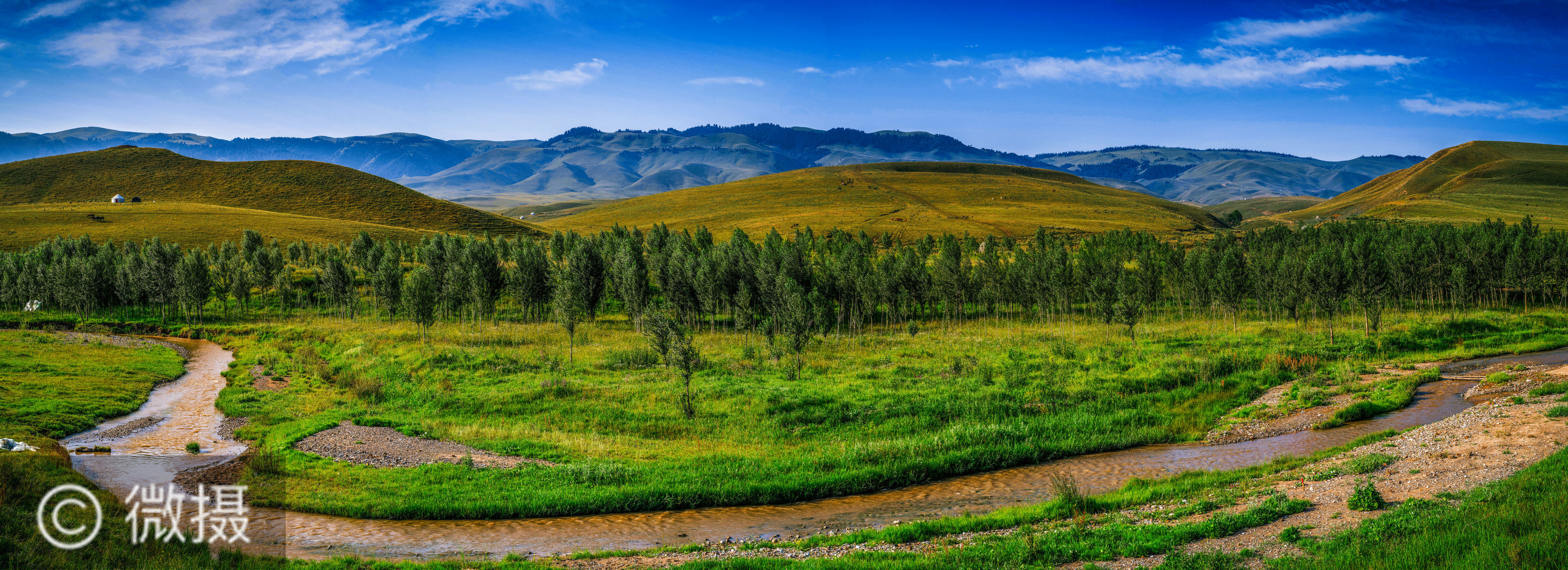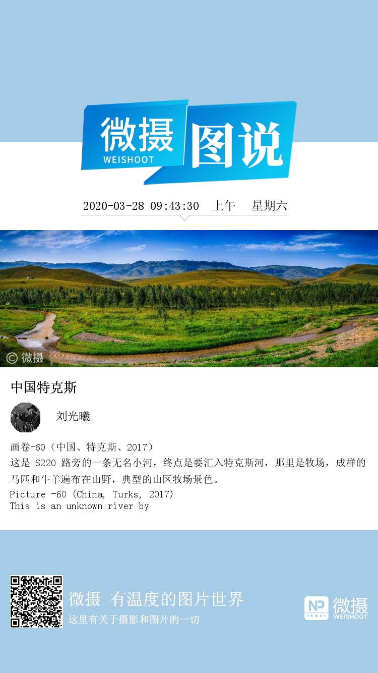 画卷-60(中国、特克斯、2017) 这是 S220 路旁的一条无名小河,终点是要汇入特克斯河,那里是牧场,成群的马匹和牛羊遍布在山野,典型的山区牧场景色。 Picture -60 (China, Turks, 2017) This is an unknown river by