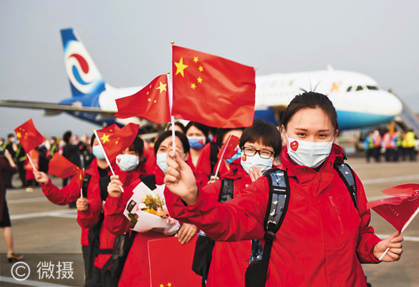 3月23日17时03分,首架包机缓缓降落。停机坪上,地勤人员手持“致敬最美逆行者”等手牌,欢迎英雄归来。10多分钟后,另外4架飞机依次降落。这5架飞机上搭载的是重庆赴孝感支援队首批669名队员,他们在孝感奋战57天,与死神抢夺生命。在这仲春时节,英雄回家了。重庆日报记者 苏思 摄