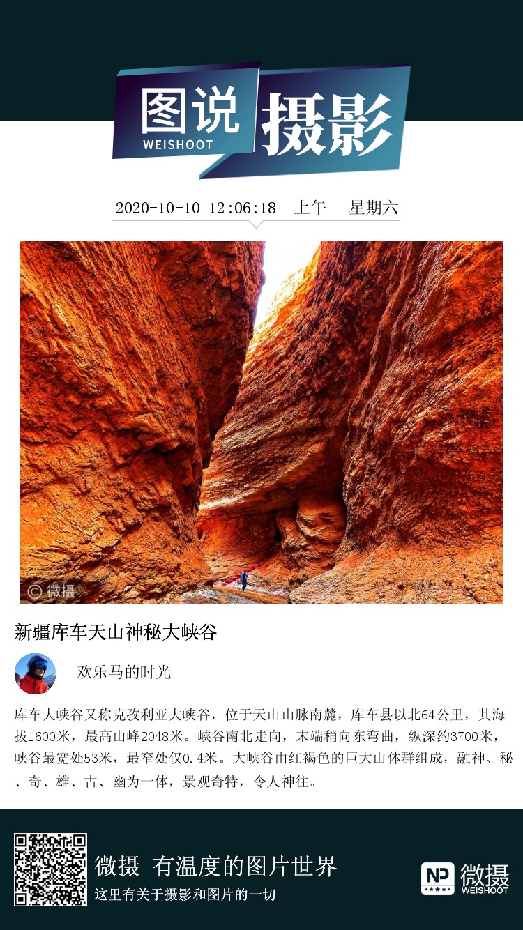 库车大峡谷又称克孜利亚大峡谷,位于天山山脉南麓,库车县以北64公里,其海拔1600米,最高山峰2048米。峡谷南北走向,末端稍向东弯曲,纵深约3700米,峡谷最宽处53米,最窄处仅0.4米。大峡谷由红褐色的巨大山体群组成,融神、秘、奇、雄、古、幽为一体,景观奇特,令人神往。