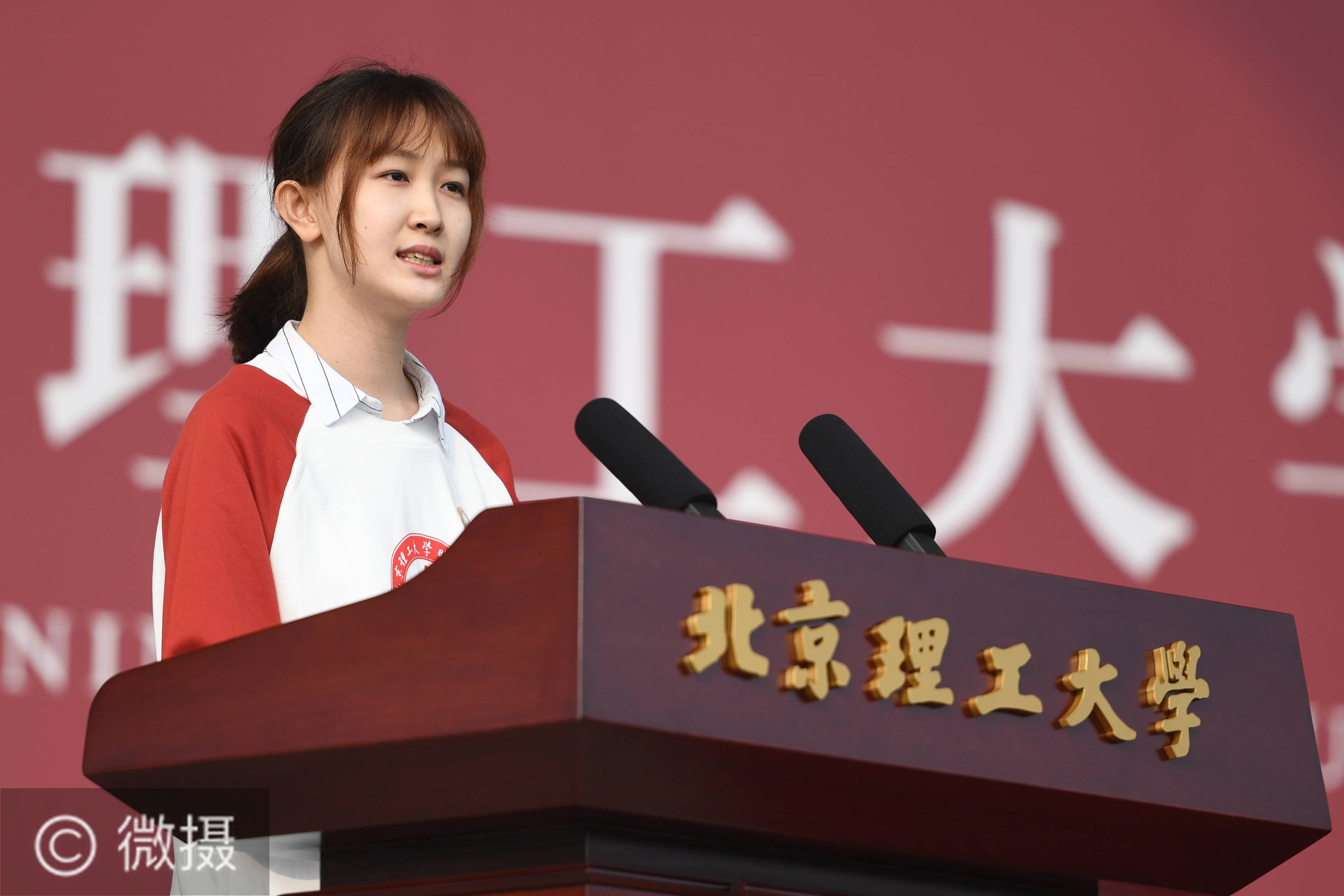 北京理工大学举行2020年本科生开学典礼。10月10日,2020级本科生代表柴思源在北京理工大学2020年本科生开学典礼上发言。当日,北京理工大学2020年本科生开学典礼在北京理工大学良乡校区南操场举行。新华社记者 任超 摄
