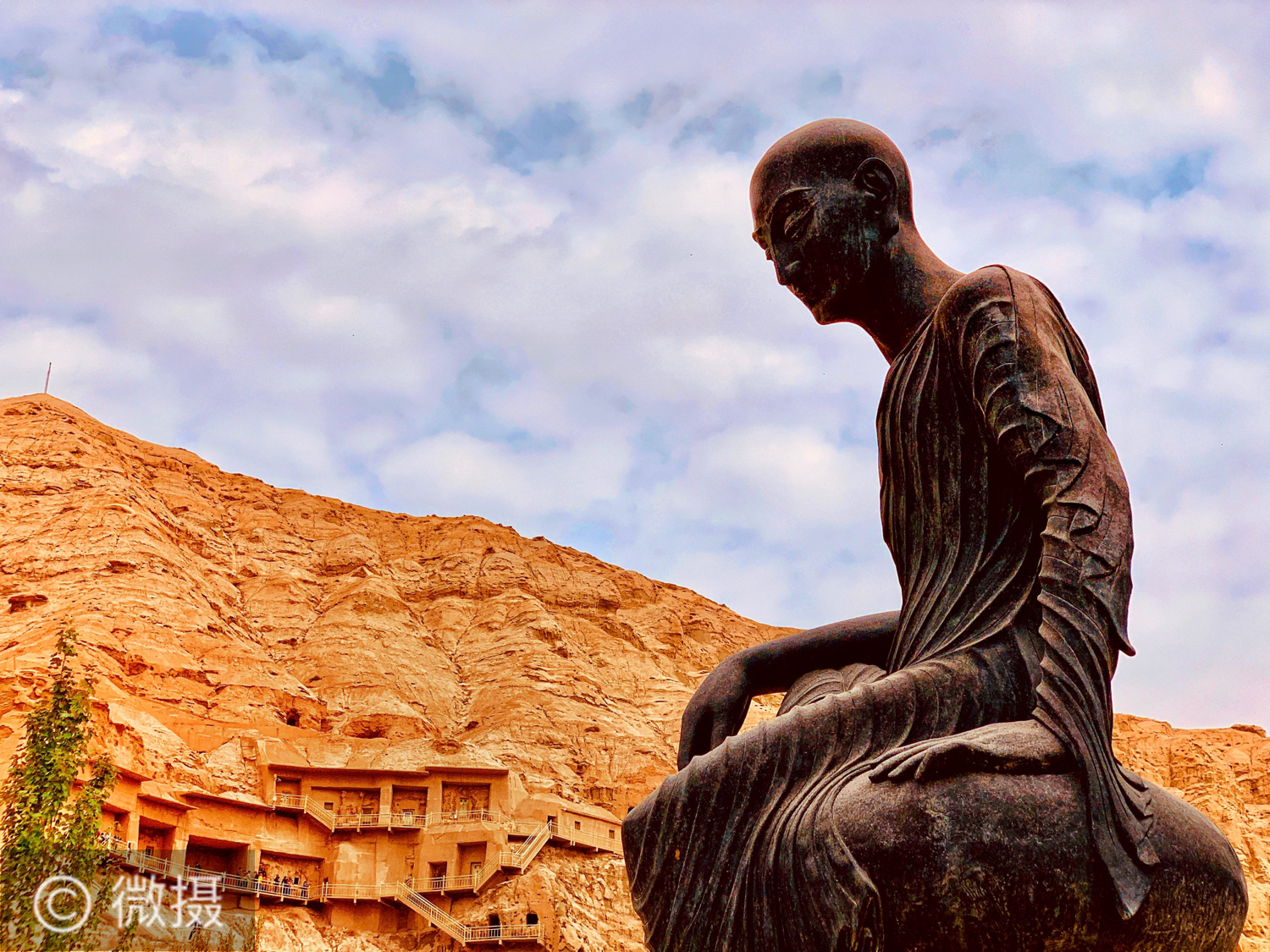 克孜尔石窟前的鸠摩罗什铜像
