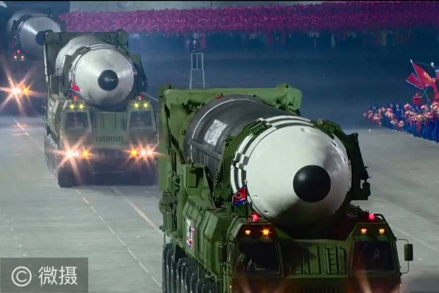 朝鲜通过在黑暗的掩护下进行大规模的军事游行来使世界不知情。金正恩(Kim Jong-un)推出了由一系列鲜见的武器装备,庆祝朝鲜劳动党成立75周年。武器分析家认为,在泛光灯下的盛会中占主导地位的是,四枚巨大的新型液体燃料洲际弹道导弹能够打击美国本土。