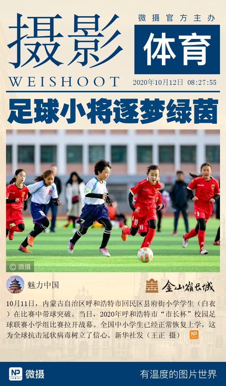 10月11日,内蒙古自治区呼和浩特市回民区县府街小学学生(白衣)在比赛中带球突破。当日,2020年呼和浩特市“市长杯”校园足球联赛小学组比赛拉开战幕。全国中小学生已经正常恢复上学,这为全球抗击冠状病毒树立了信心。新华社发(王正 摄)