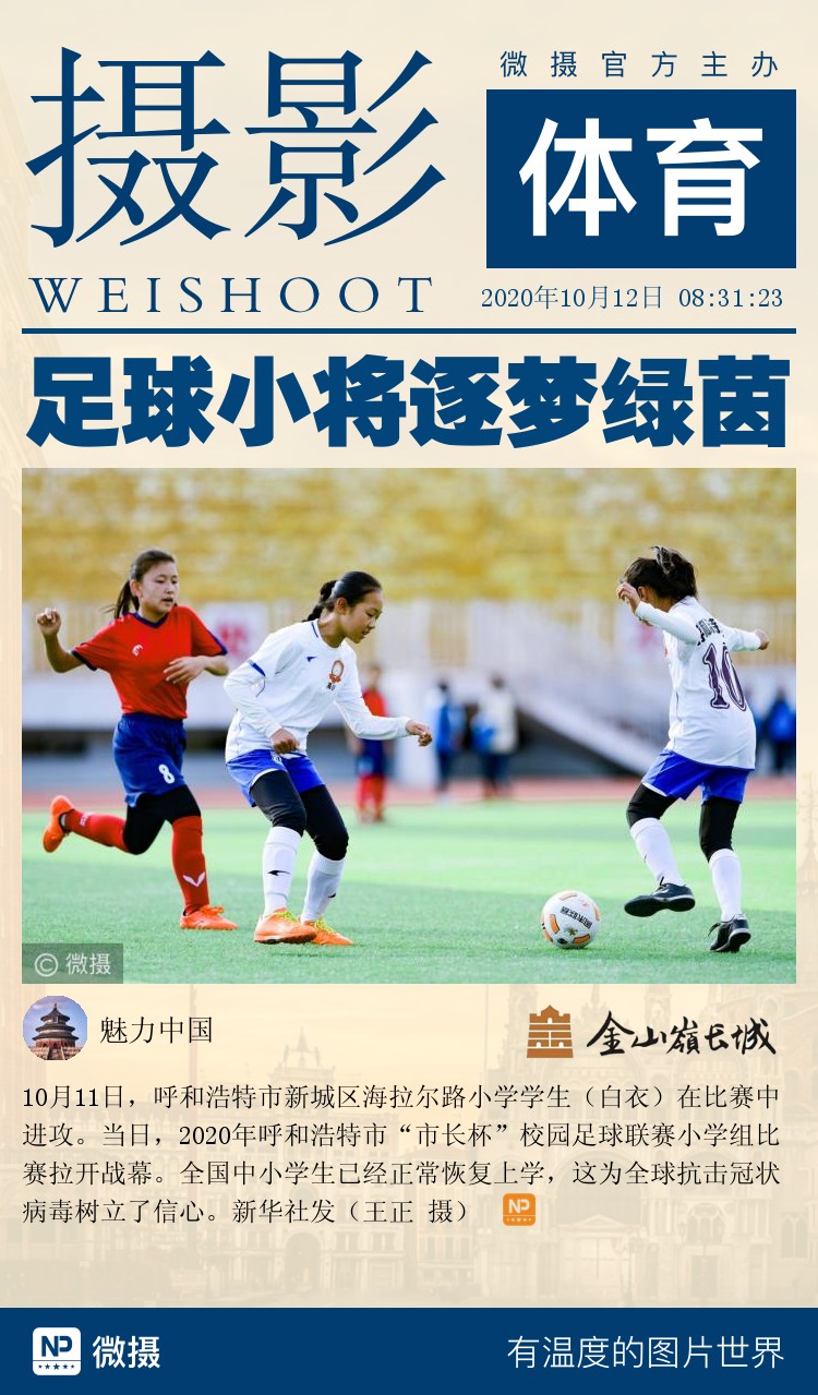 10月11日,呼和浩特市新城区海拉尔路小学学生(白衣)在比赛中进攻。当日,2020年呼和浩特市“市长杯”校园足球联赛小学组比赛拉开战幕。全国中小学生已经正常恢复上学,这为全球抗击冠状病毒树立了信心。新华社发(王正 摄)
