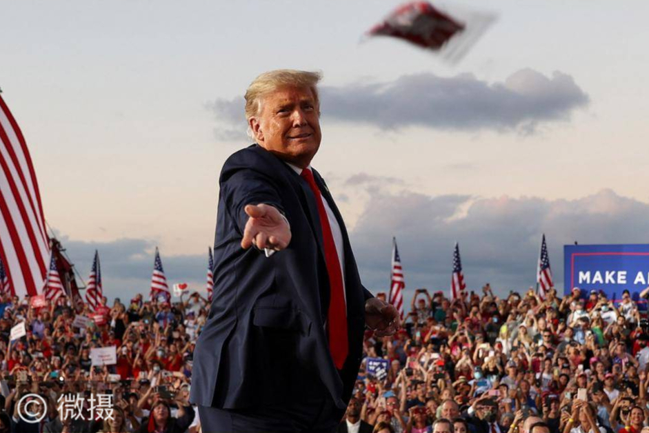 特朗普总统昨天在佛罗里达州的一次集会上向观众抛下了面具。10月12日,在佛罗里达州,面对数千名支持者,他重申自己已对病毒“免疫”,“我要走到观众中去,亲吻在场每个人”。画面中,现场人群拥挤,少见口罩。这不是特朗普出院后第一次摘掉口罩面对公众。乔纳森·恩斯特/摄影