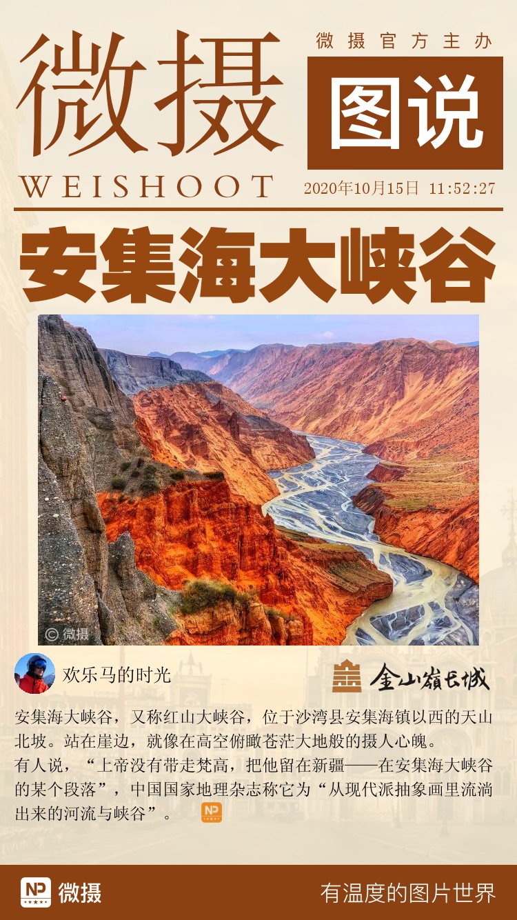 安集海大峡谷,又称红山大峡谷,位于沙湾县安集海镇以西的天山北坡。站在崖边,就像在高空俯瞰苍茫大地般的摄人心魄。 有人说,“上帝没有带走梵高,把他留在新疆——在安集海大峡谷的某个段落”,中国国家地理杂志称它为“从现代派抽象画里流淌出来的河流与峡谷”。