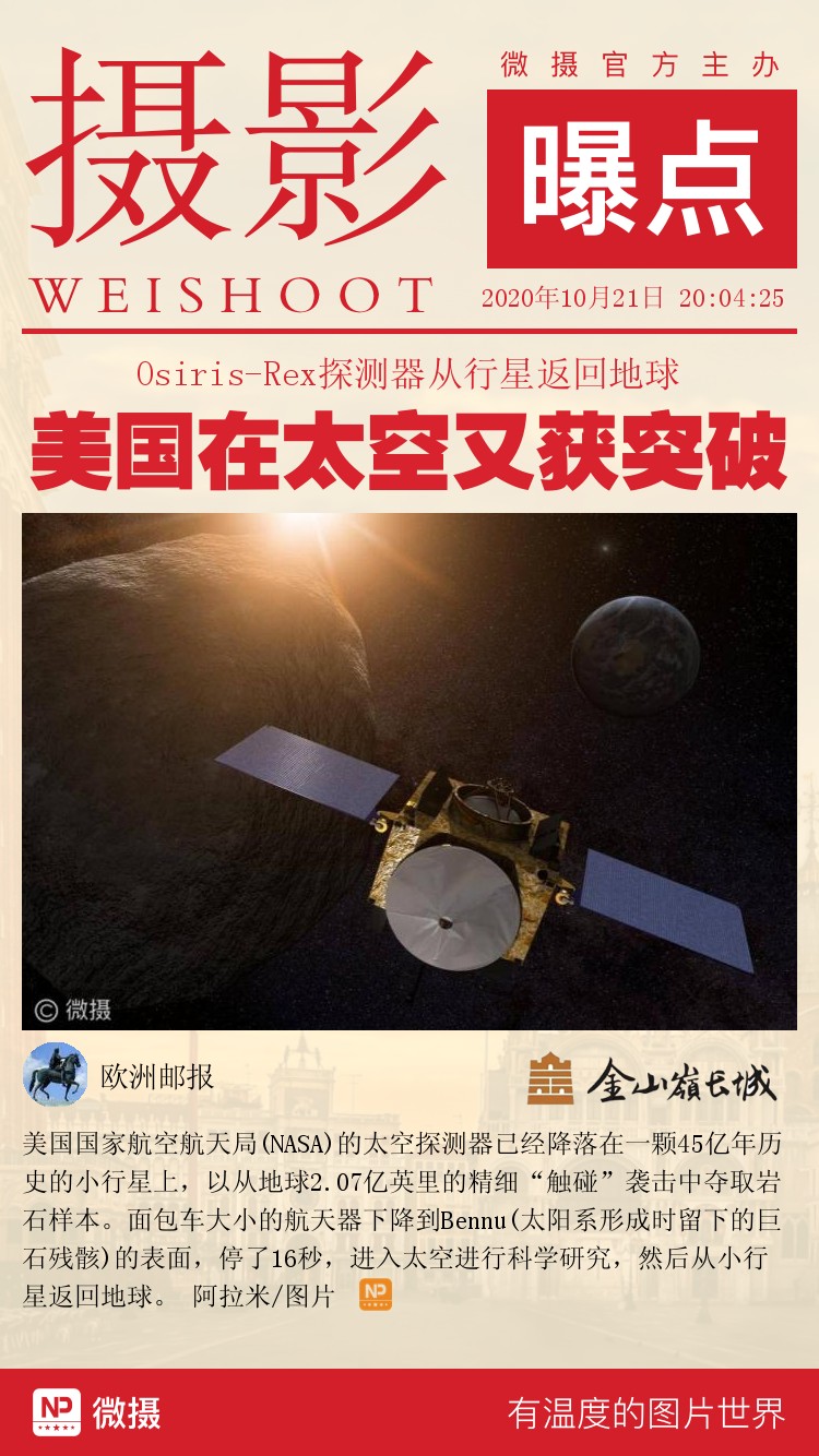 美国国家航空航天局(NASA)的太空探测器已经降落在一颗45亿年历史的小行星上,以从地球2.07亿英里的精细“触碰”袭击中夺取岩石样本。面包车大小的航天器下降到Bennu(太阳系形成时留下的巨石残骸)的表面,停了16秒,进入太空进行科学研究,然后从小行星返回地球。 阿拉米/图片