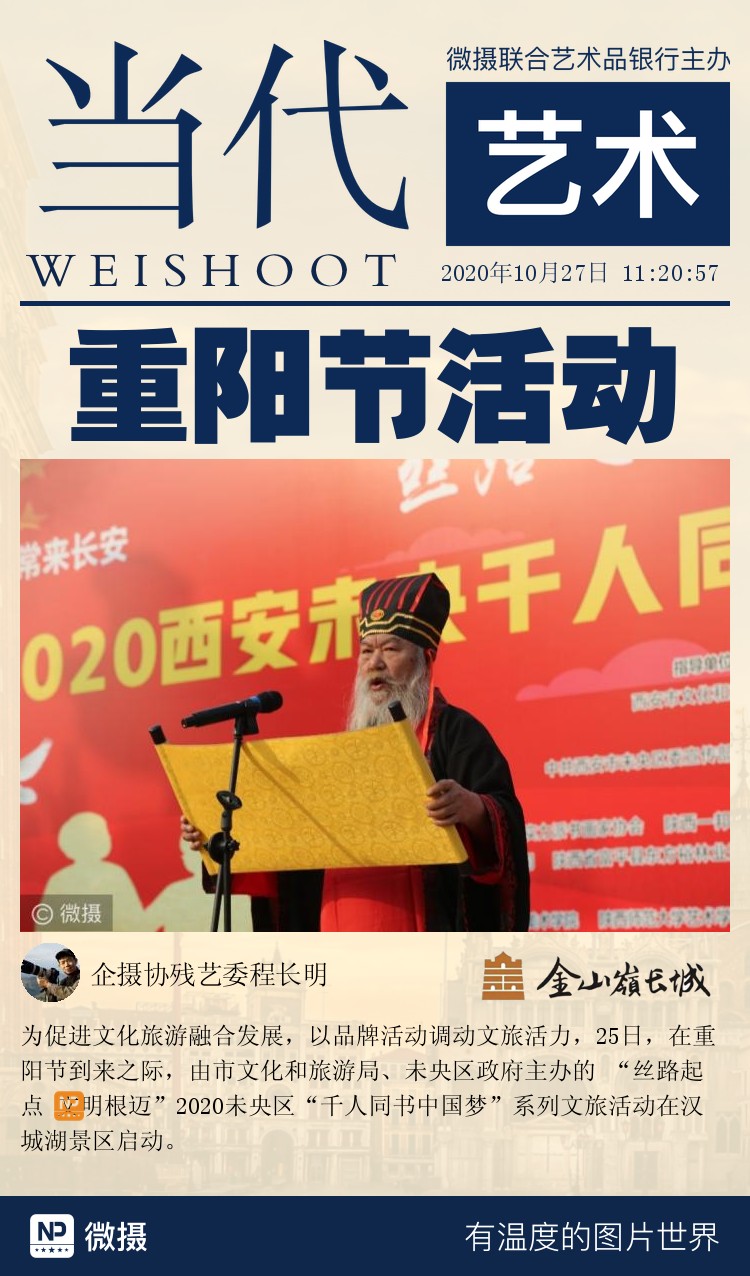 为促进文化旅游融合发展,以品牌活动调动文旅活力,25日,在重阳节到来之际,由市文化和旅游局、未央区政府主办的 “丝路起点 文明根迈”2020未央区“千人同书中国梦”系列文旅活动在汉城湖景区启动。