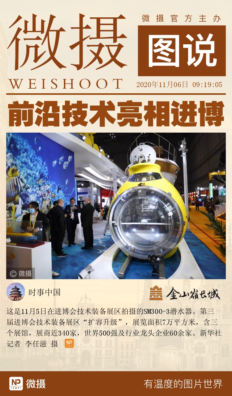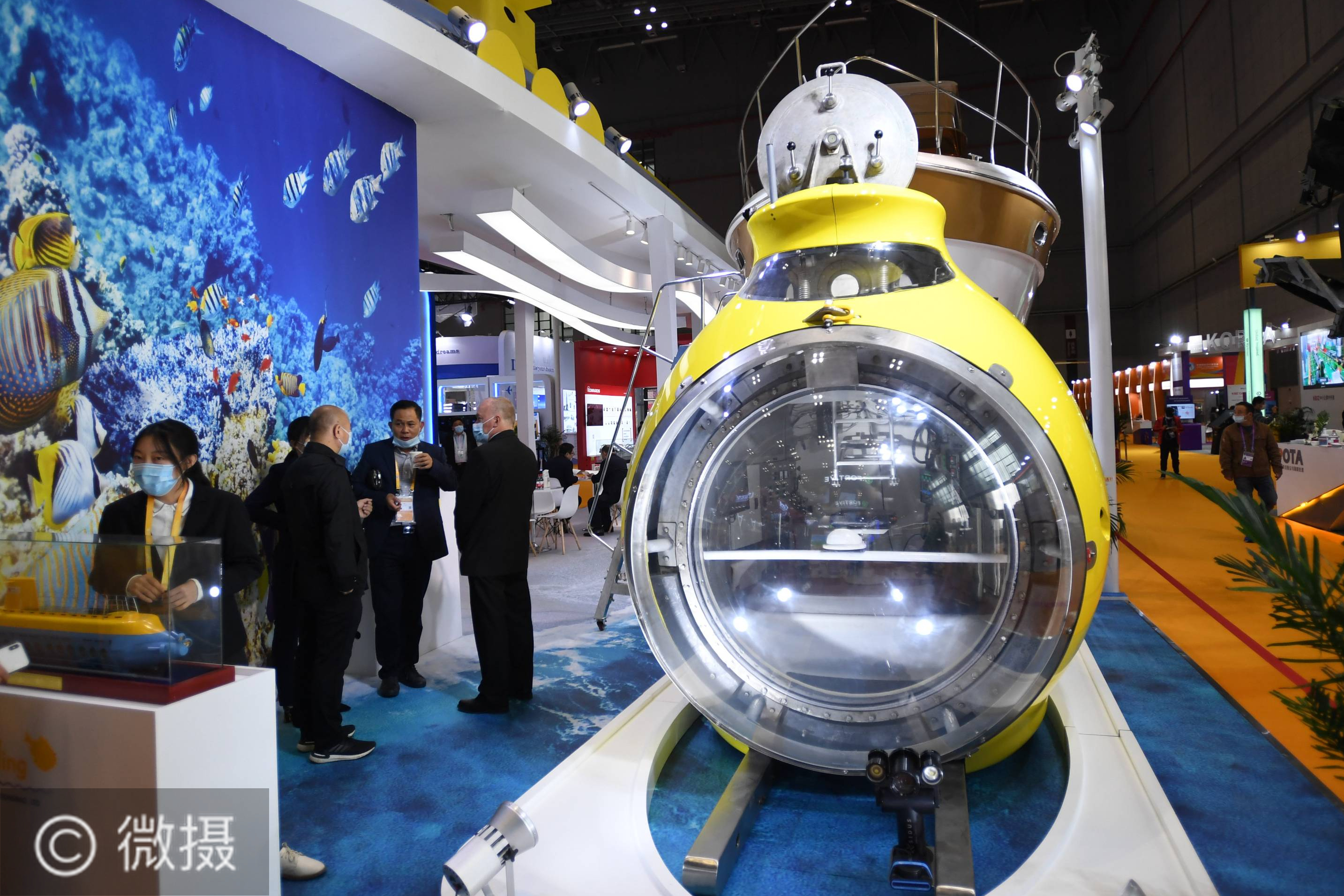 这是11月5日在进博会技术装备展区拍摄的SM300-3潜水器。第三届进博会技术装备展区“扩容升级”,展览面积7万平方米,含三个展馆,展商近340家,世界500强及行业龙头企业60余家。新华社记者 李任滋 摄