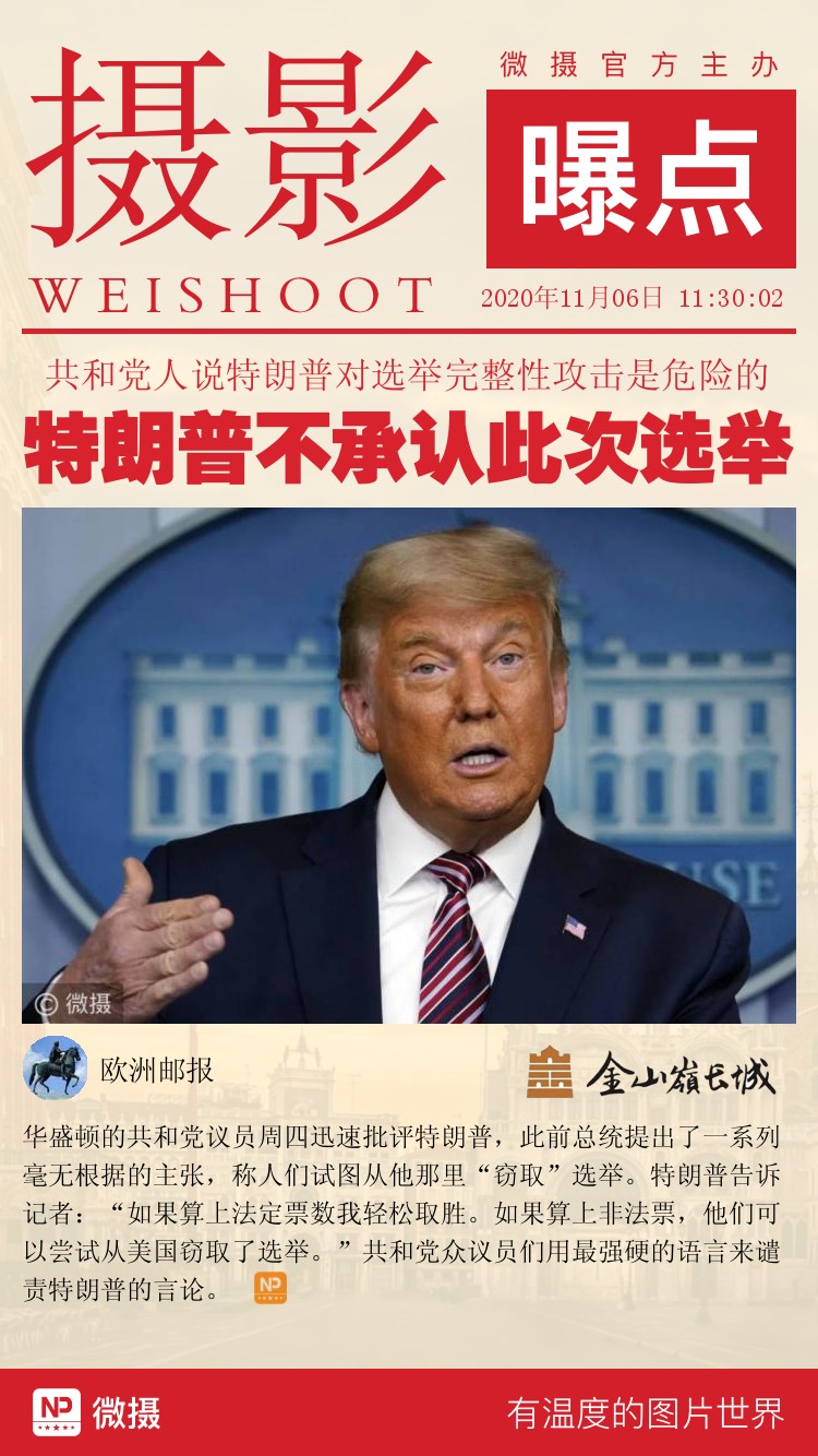 华盛顿的共和党议员周四迅速批评特朗普,此前总统提出了一系列毫无根据的主张,称人们试图从他那里“窃取”选举。特朗普告诉记者:“如果算上法定票数我轻松取胜。如果算上非法票,他们可以尝试从美国窃取了选举。”共和党众议员们用最强硬的语言来谴责特朗普的言论。