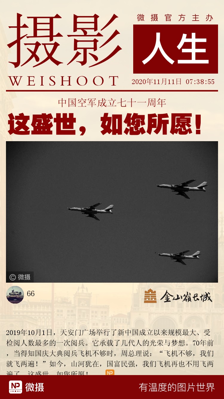 2019年10月1日,天安门广场举行了新中国成立以来规模最大、受检阅人数最多的一次阅兵。它承载了几代人的光荣与梦想。70年前,当得知国庆大典阅兵飞机不够时,周总理说:“飞机不够,我们就飞两遍!”如今,山河犹在,国富民强,我们飞机再也不用飞两遍了。这盛世,如您所愿!