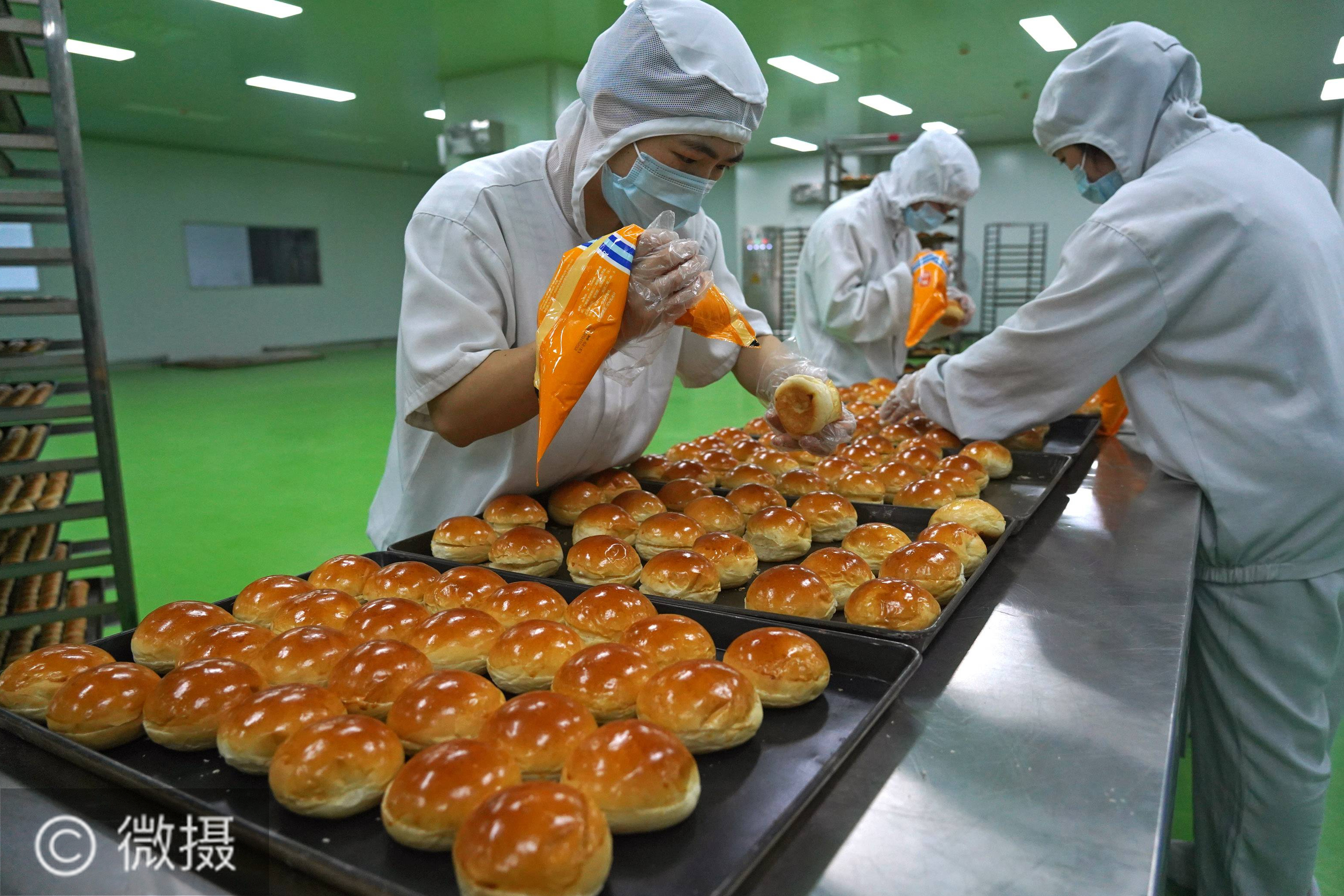 资溪县面包食品产业城内一家面包企业的工人在制作面包(11月11日摄)。近年来,江西省资溪县通过建设面包食品产业城、举办面包文化节、构建面包全产业链等举措,带动当地群众增收致富。据了解,资溪县12.6万人口中有近5万人从事面包及相关产业,有“中国面包之乡”称号。新华社记者万象摄