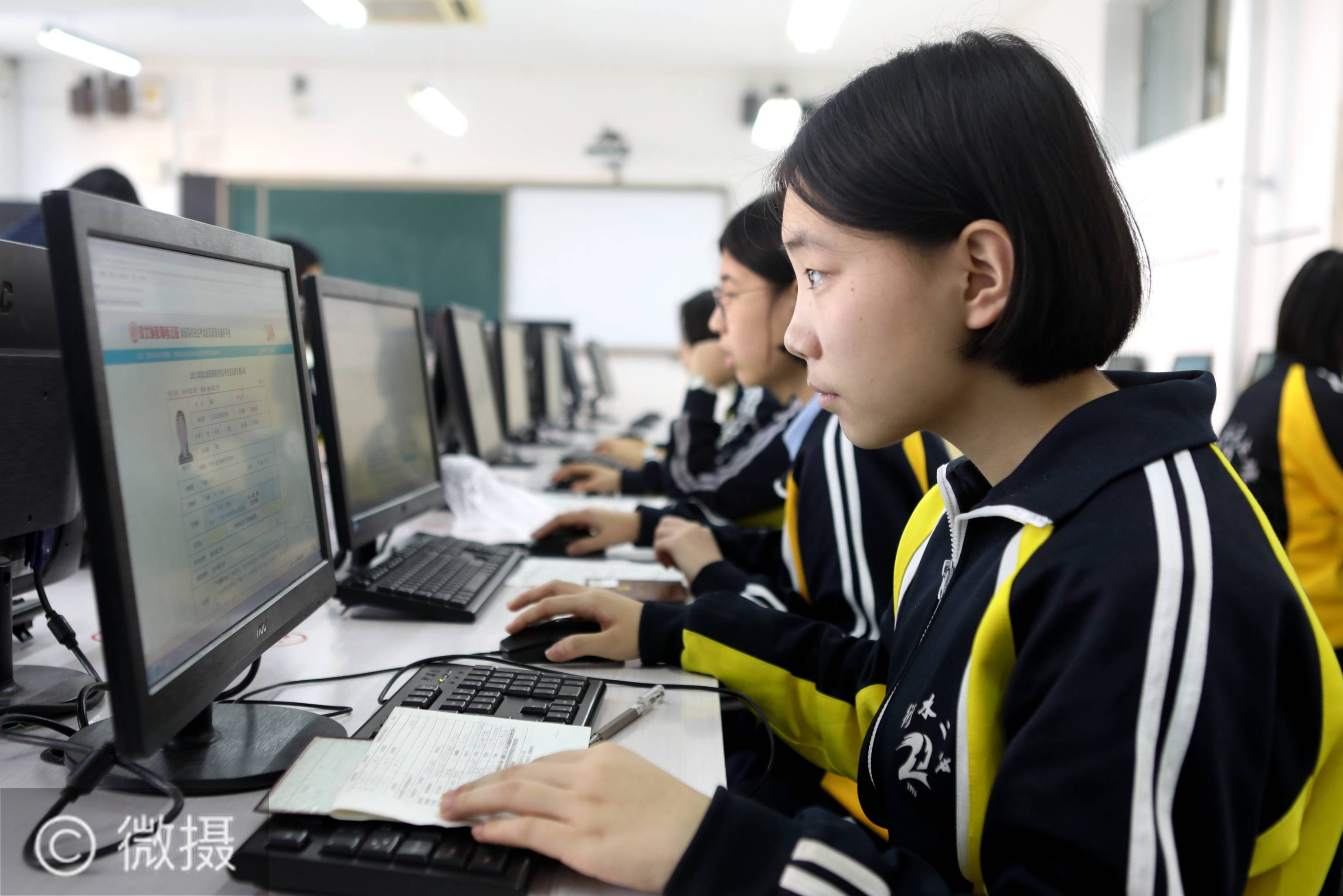 11月12日,河北省衡水市第二中学高三学生在进行2021年高考网上报名。2021年河北省普通高校招生考试网上报名工作陆续展开,11月11日至15日为网上申报阶段,11月16日至11月25日为报名资格审核和现场确认阶段。新华社记者 朱旭东 摄