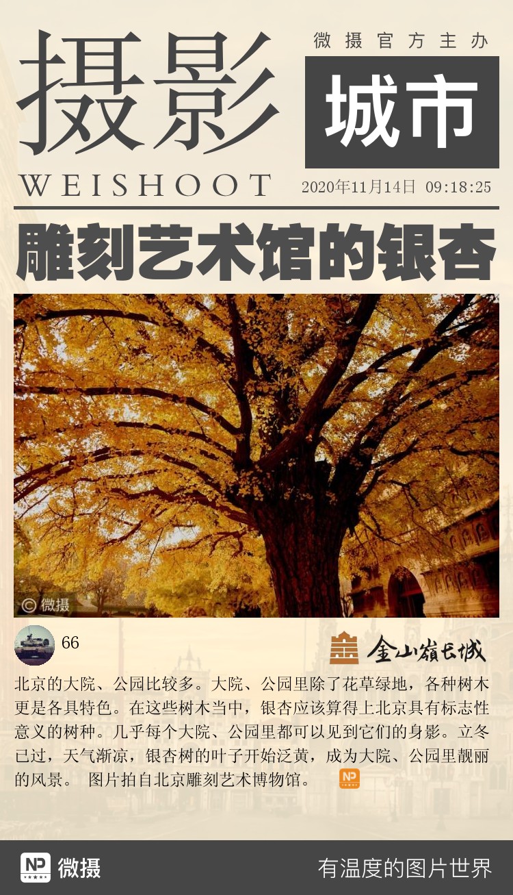 北京的大院、公园比较多。大院、公园里除了花草绿地,各种树木更是各具特色。在这些树木当中,银杏应该算得上北京具有标志性意义的树种。几乎每个大院、公园里都可以见到它们的身影。立冬已过,天气渐凉,银杏树的叶子开始泛黄,成为大院、公园里靓丽的风景。 图片拍自北京雕刻艺术博物馆。