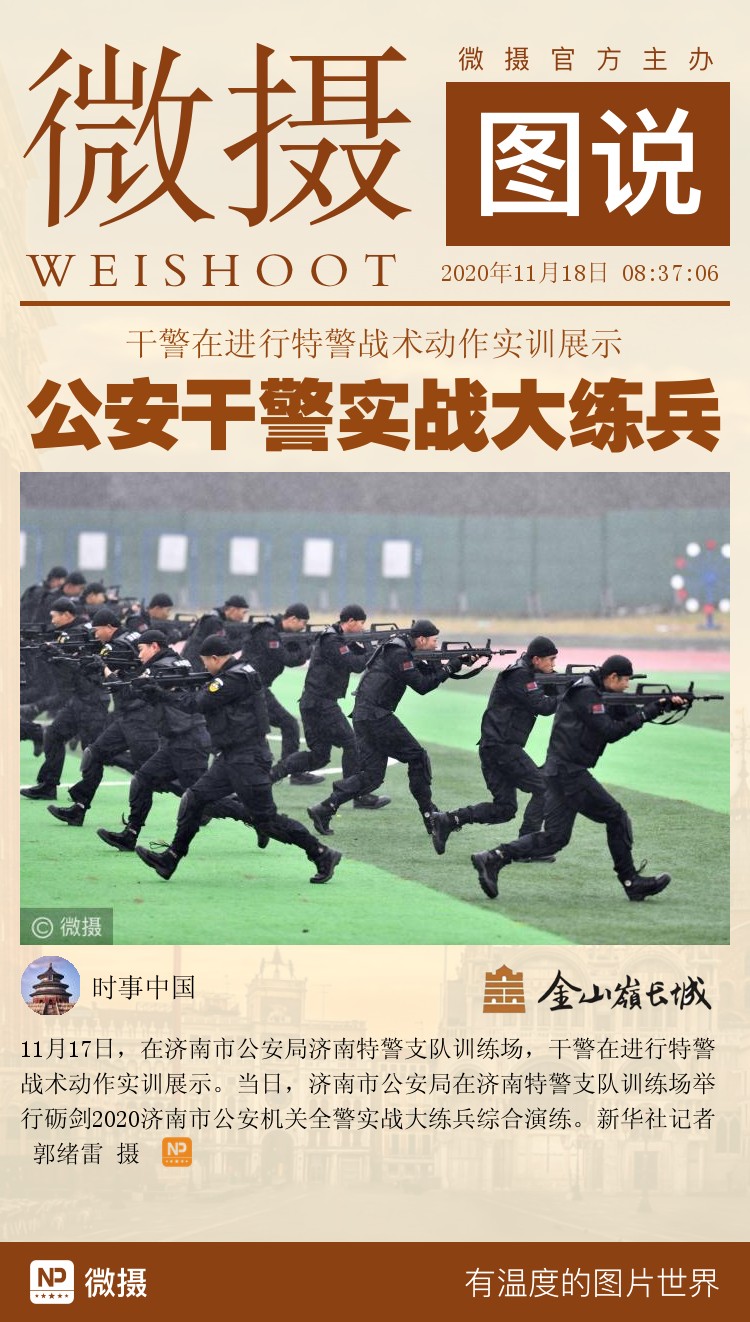 11月17日,在济南市公安局济南特警支队训练场,干警在进行特警战术动作实训展示。当日,济南市公安局在济南特警支队训练场举行砺剑2020济南市公安机关全警实战大练兵综合演练。新华社记者 郭绪雷 摄