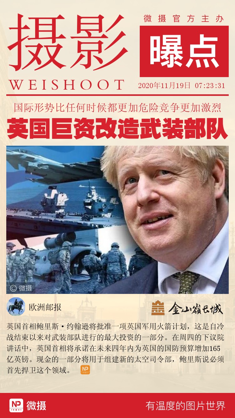 英国首相鲍里斯·约翰逊将批准一项英国军用火箭计划,这是自冷战结束以来对武装部队进行的最大投资的一部分。在周四的下议院讲话中,英国首相将承诺在未来四年内为英国的国防预算增加165亿英镑。现金的一部分将用于组建新的太空司令部,鲍里斯说必须首先捍卫这个领域。