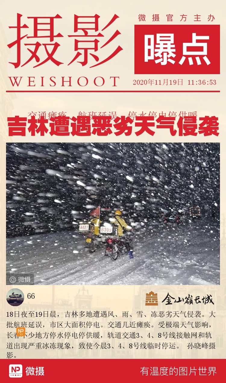 18日夜至19日晨,吉林多地遭遇风、雨、雪、冻恶劣天气侵袭。大批航班延误,市区大面积停电。交通几近瘫痪。受极端天气影响,长春不少地方停水停电停供暖,轨道交通3、4、8号线接触网和轨道出现严重冰冻现象,致使今晨3、4、8号线临时停运。 孙晓峰摄影。