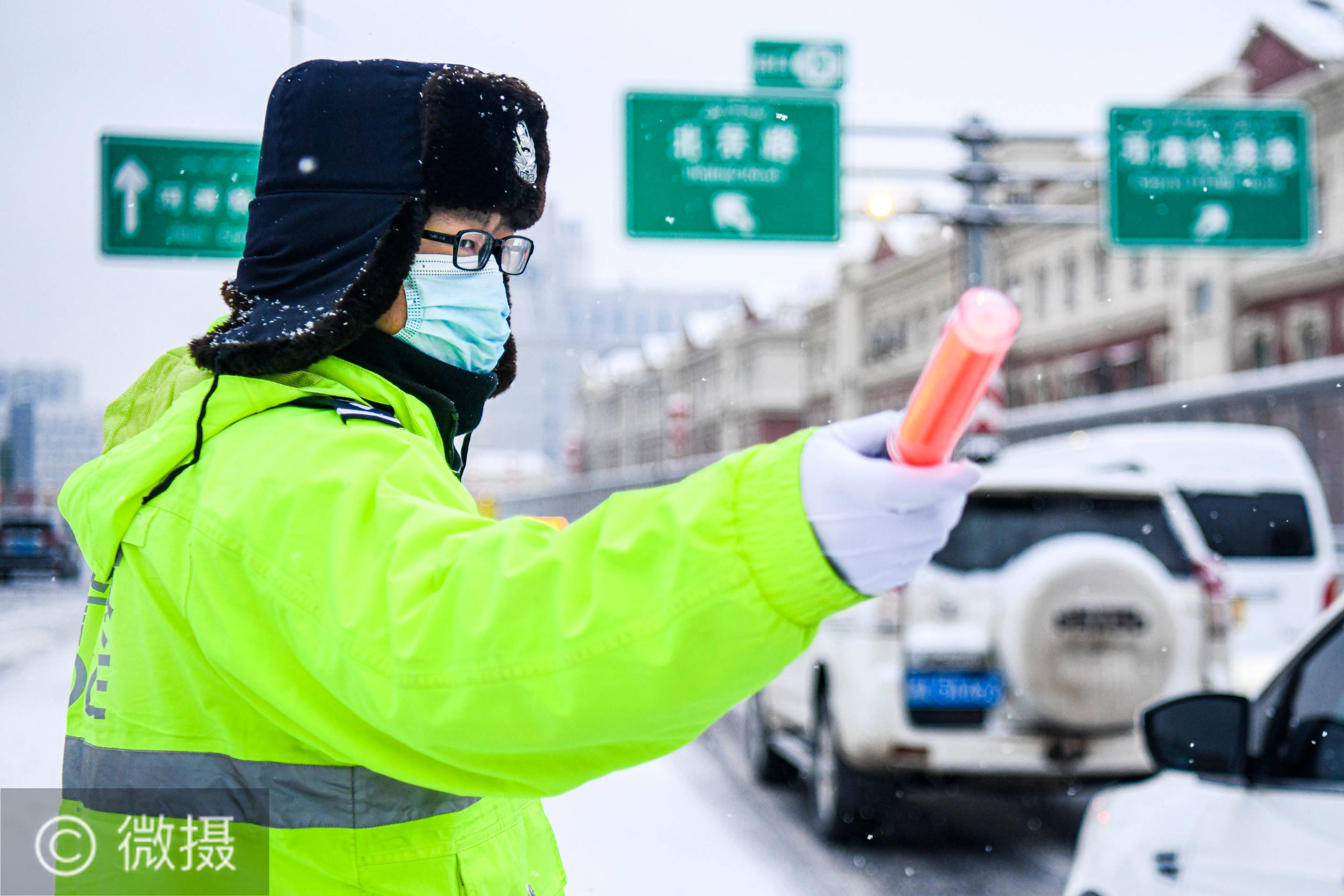 11月19日,乌鲁木齐市公安局交警支队城市快速路大队外环路中队民警曹旭在北京路执勤点指挥交通。连续多日的降雪降温,乌鲁木齐城区普遍出现积雪,道路湿滑。19日早间,乌鲁木齐交警支队启动恶劣天气一级响应勤务,设置264个点位执勤,出警445人,确保市民出行通畅。 新华社记者王菲摄