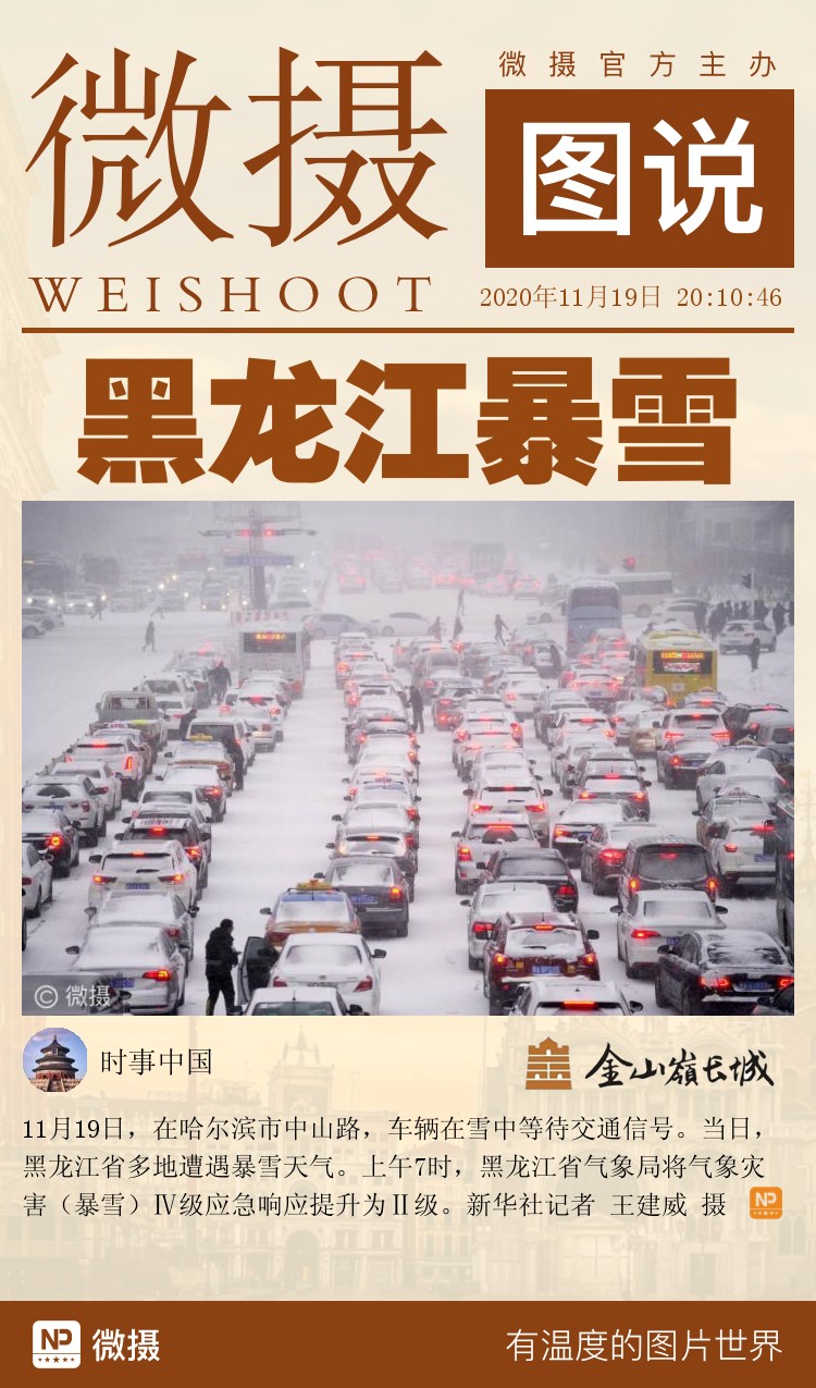 11月19日,在哈尔滨市中山路,车辆在雪中等待交通信号。当日,黑龙江省多地遭遇暴雪天气。上午7时,黑龙江省气象局将气象灾害(暴雪)Ⅳ级应急响应提升为Ⅱ级。新华社记者 王建威 摄