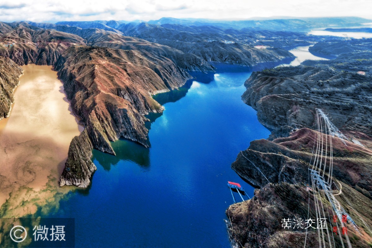 全长673公里的洮河,发源于青海省黄南藏族自治州河南蒙古族自治县西倾山东麓,由西向东在甘肃省岷县境内折向北流,在永靖县汇入黄河刘家峡水库,两条不同颜色的“巨龙”形成了壮丽奇观,在当地被称为“黄洮交汇”或“二龙戏珠”。