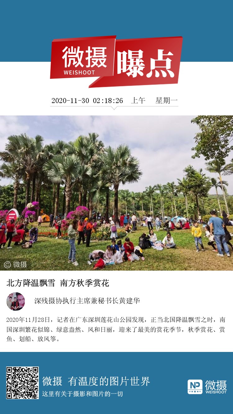 2020年11月28日,记者在广东深圳莲花山公园发现,正当北国降温飘雪之时,南国深圳繁花似锦、绿意盎然、风和日丽,迎来了最美的赏花季节,秋季赏花、赏鱼、划船、放风筝。