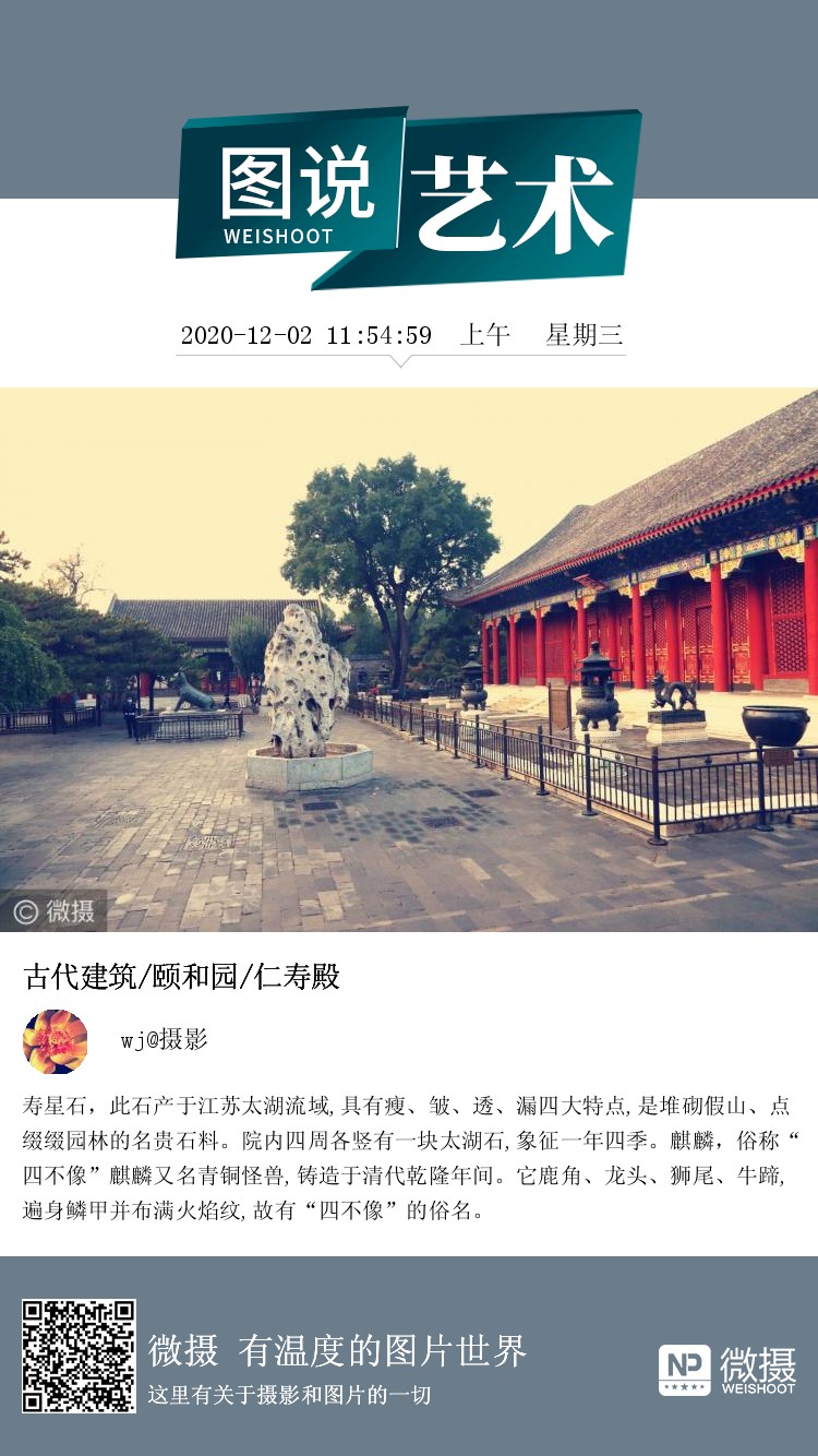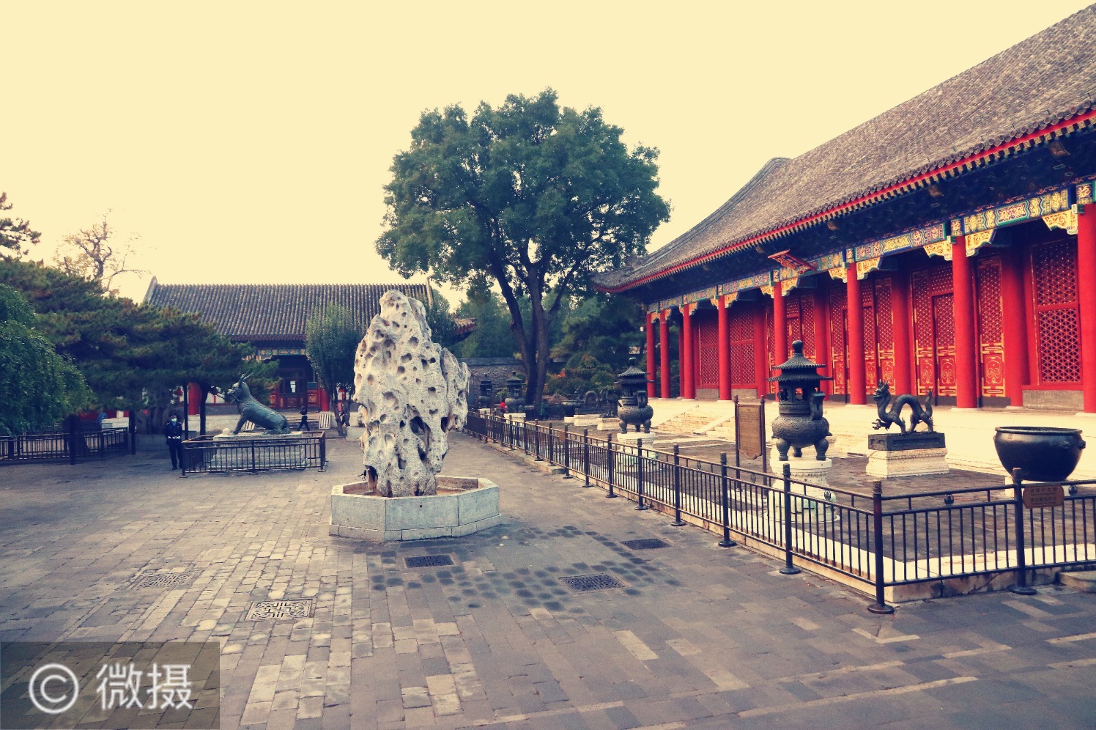 寿星石,此石产于江苏太湖流域,具有瘦、皱、透、漏四大特点,是堆砌假山、点缀缀园林的名贵石料。院内四周各竖有一块太湖石,象征一年四季。麒麟,俗称“四不像”麒麟又名青铜怪兽,铸造于清代乾隆年间。它鹿角、龙头、狮尾、牛蹄,遍身鳞甲并布满火焰纹,故有“四不像”的俗名。