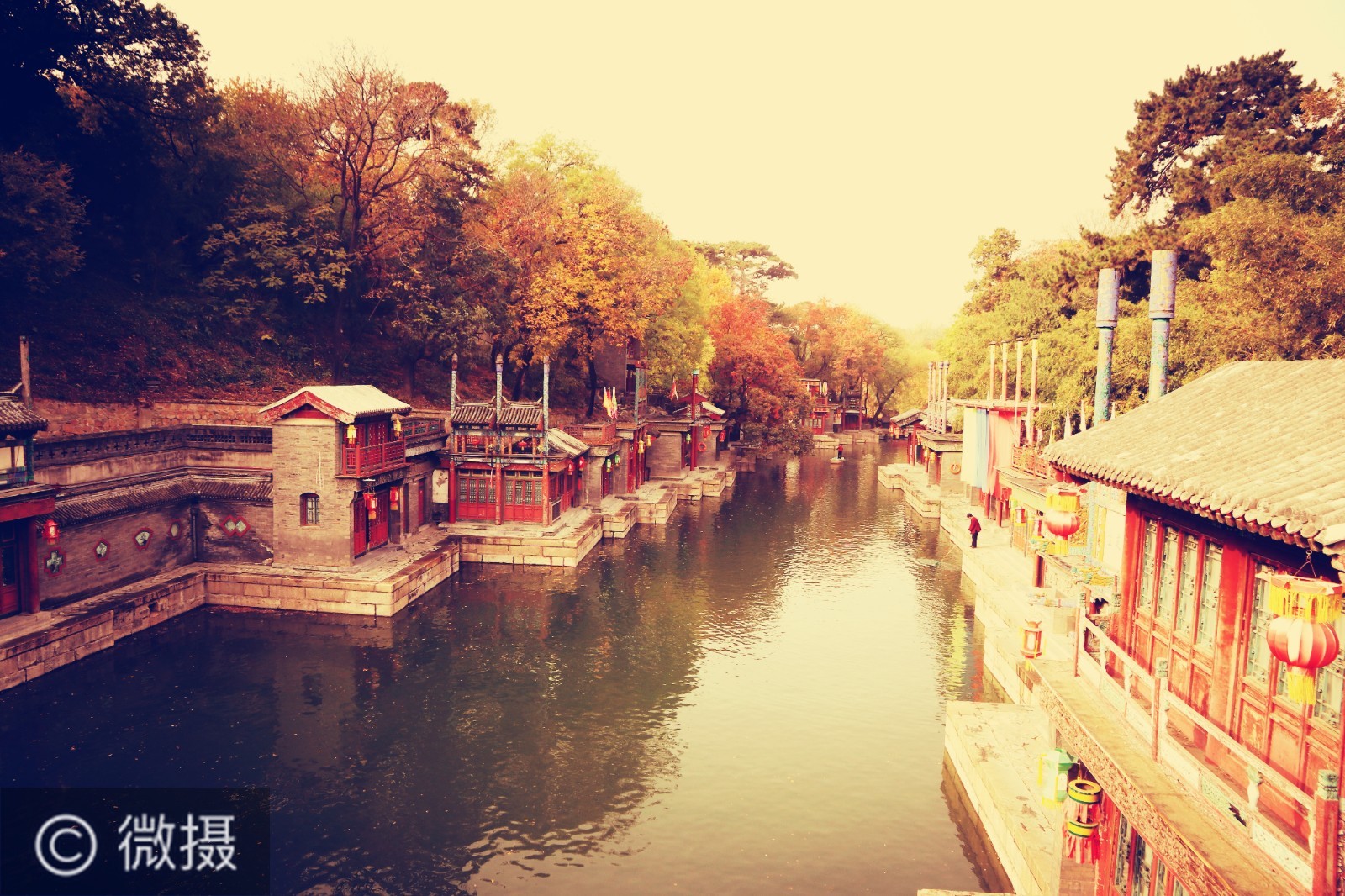 苏州街,在乾隆皇帝第一次下江南的时候,他就对苏州的七里山塘街特别钟爱,流连忘返,当时沒有摄影照像技术,于是就命人把七里山塘街的风貌画下来。回到北京后就命人在北京颐和园万寿山后面的后河两岸开始仿建,作为其母亲70岁大寿礼物。颐和园的水系都是连通的,可以坐船从昆明湖直达后河的苏州街。