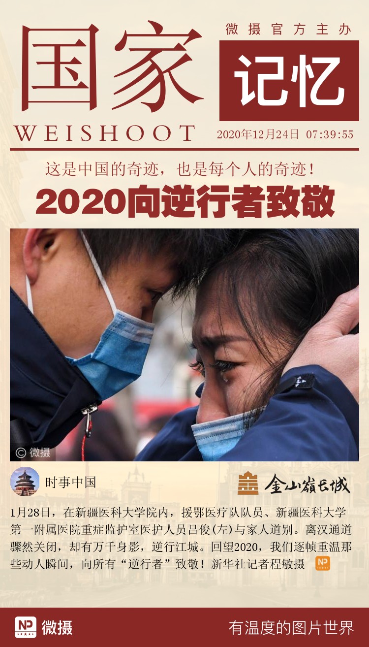 1月28日,在新疆医科大学院内,援鄂医疗队队员、新疆医科大学第一附属医院重症监护室医护人员吕俊(左)与家人道别。离汉通道骤然关闭,却有万千身影,逆行江城。回望2020,我们逐帧重温那些动人瞬间,向所有“逆行者”致敬!新华社记者程敏摄