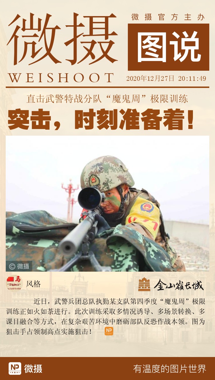 近日,武警兵团总队执勤某支队第四季度“魔鬼周”极限训练正如火如荼进行。此次训练采取多情况诱导、多场景转换、多课目融合等方式,在复杂艰苦环境中磨砺部队反恐作战本领。图为狙击手占领制高点实施狙击!