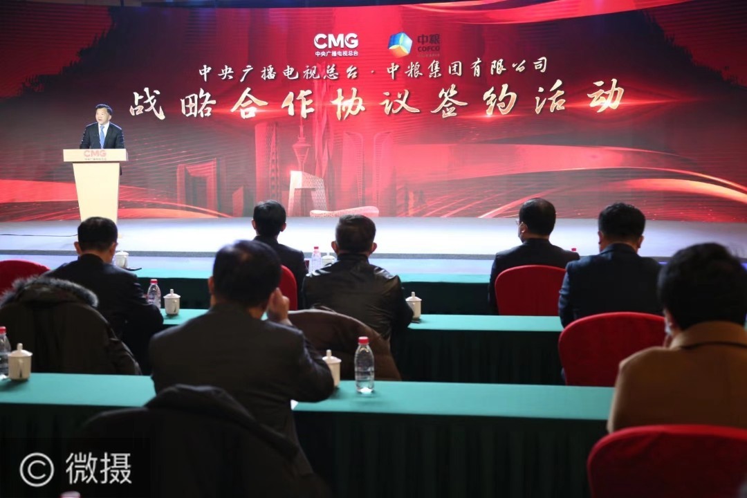 12月31日中午,中央广播电视总台与中粮集团战略合作协议签约活动在北京梅地亚中心举行。中宣部副部长、中央广播电视总台台长兼总编辑慎海雄,中粮集团党组书记、董事长吕军出席签约活动。 摄影/胡家恒