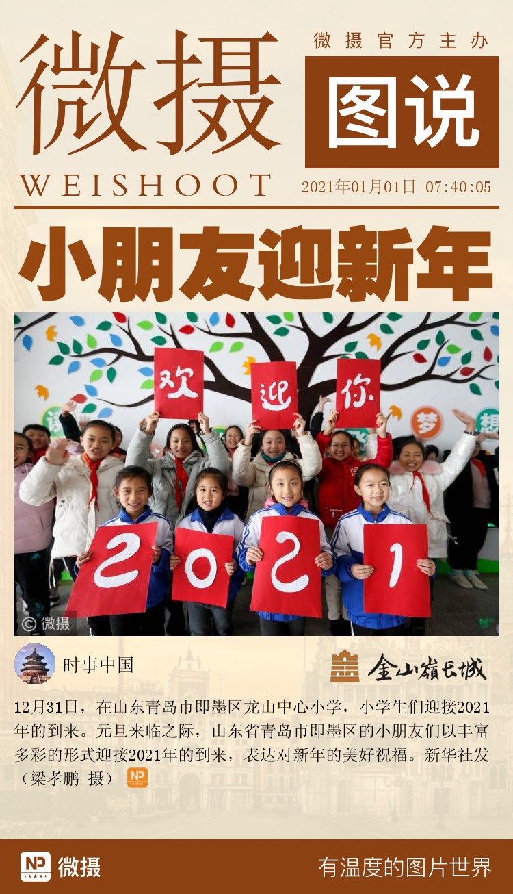 12月31日,在山东青岛市即墨区龙山中心小学,小学生们迎接2021年的到来。元旦来临之际,山东省青岛市即墨区的小朋友们以丰富多彩的形式迎接2021年的到来,表达对新年的美好祝福。新华社发(梁孝鹏 摄)