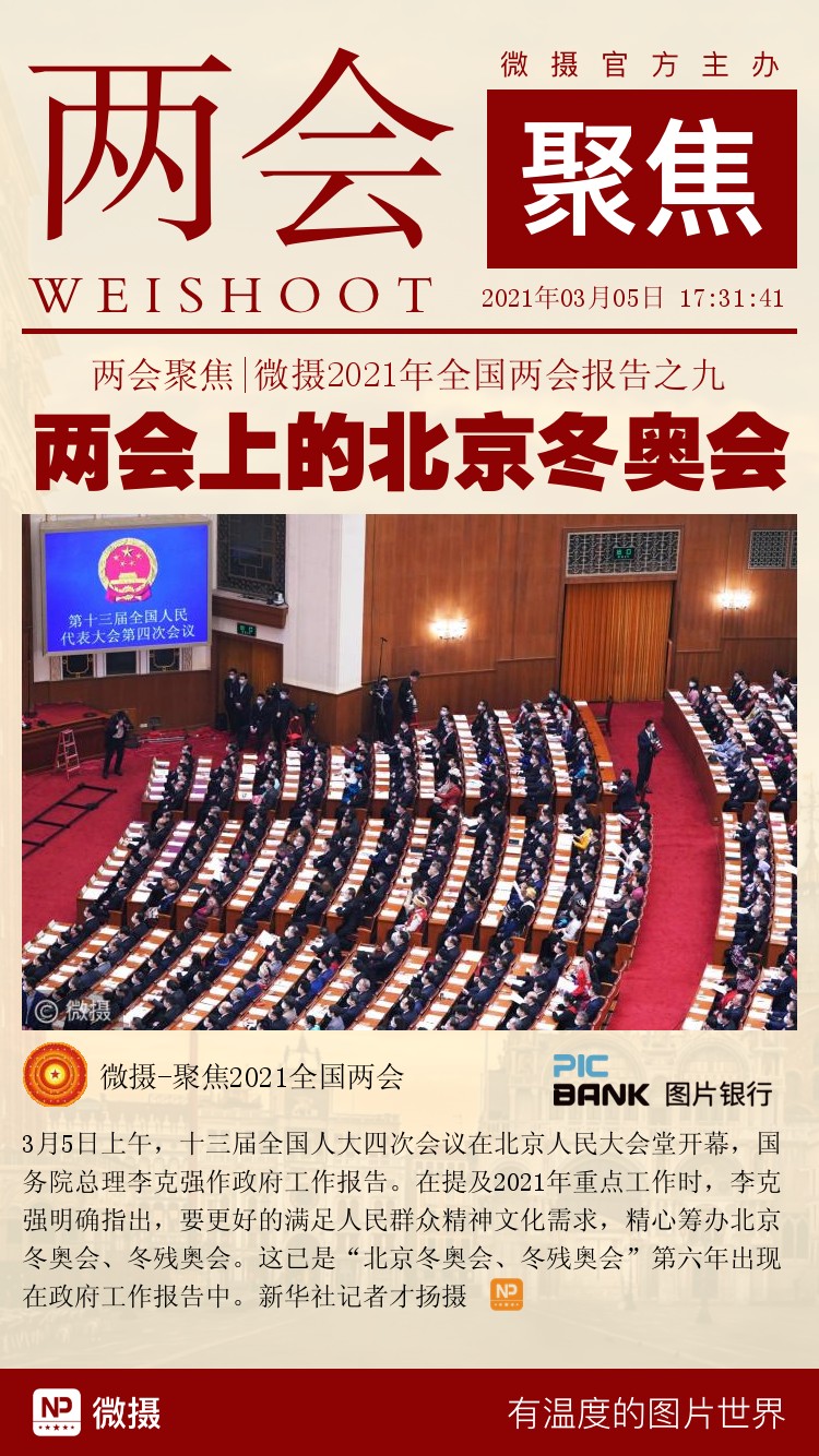 3月5日上午,十三届全国人大四次会议在北京人民大会堂开幕,国务院总理李克强作政府工作报告。在提及2021年重点工作时,李克强明确指出,要更好的满足人民群众精神文化需求,精心筹办北京冬奥会、冬残奥会。这已是“北京冬奥会、冬残奥会”第六年出现在政府工作报告中。新华社记者才扬摄