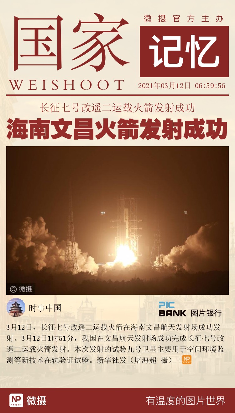 3月12日,长征七号改遥二运载火箭在海南文昌航天发射场成功发射。3月12日1时51分,我国在文昌航天发射场成功完成长征七号改遥二运载火箭发射。本次发射的试验九号卫星主要用于空间环境监测等新技术在轨验证试验。新华社发(屠海超 摄)