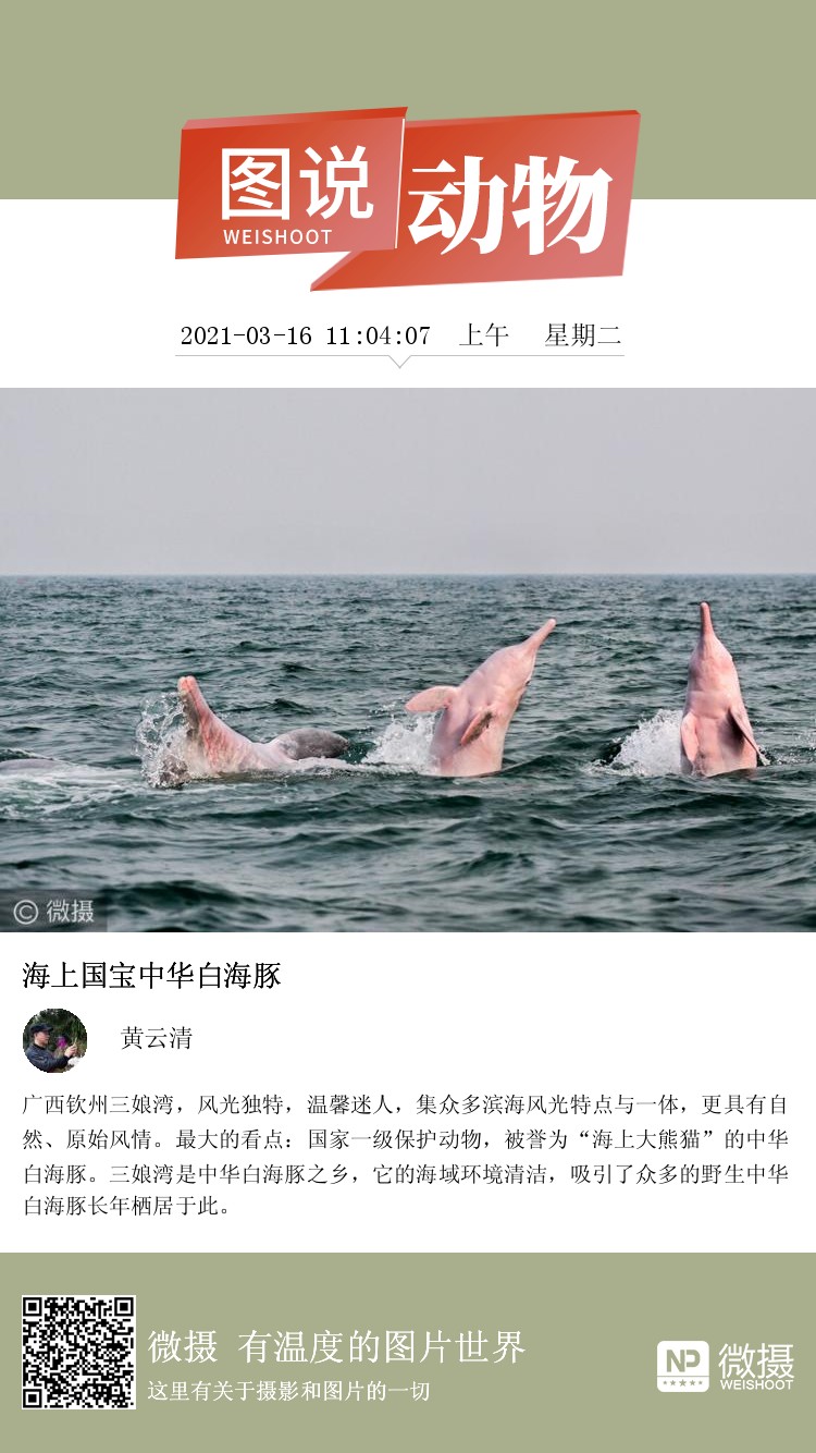 广西钦州三娘湾,风光独特,温馨迷人,集众多滨海风光特点与一体,更具有自然、原始风情。最大的看点:国家一级保护动物,被誉为“海上大熊猫”的中华白海豚。三娘湾是中华白海豚之乡,它的海域环境清洁,吸引了众多的野生中华白海豚长年栖居于此。