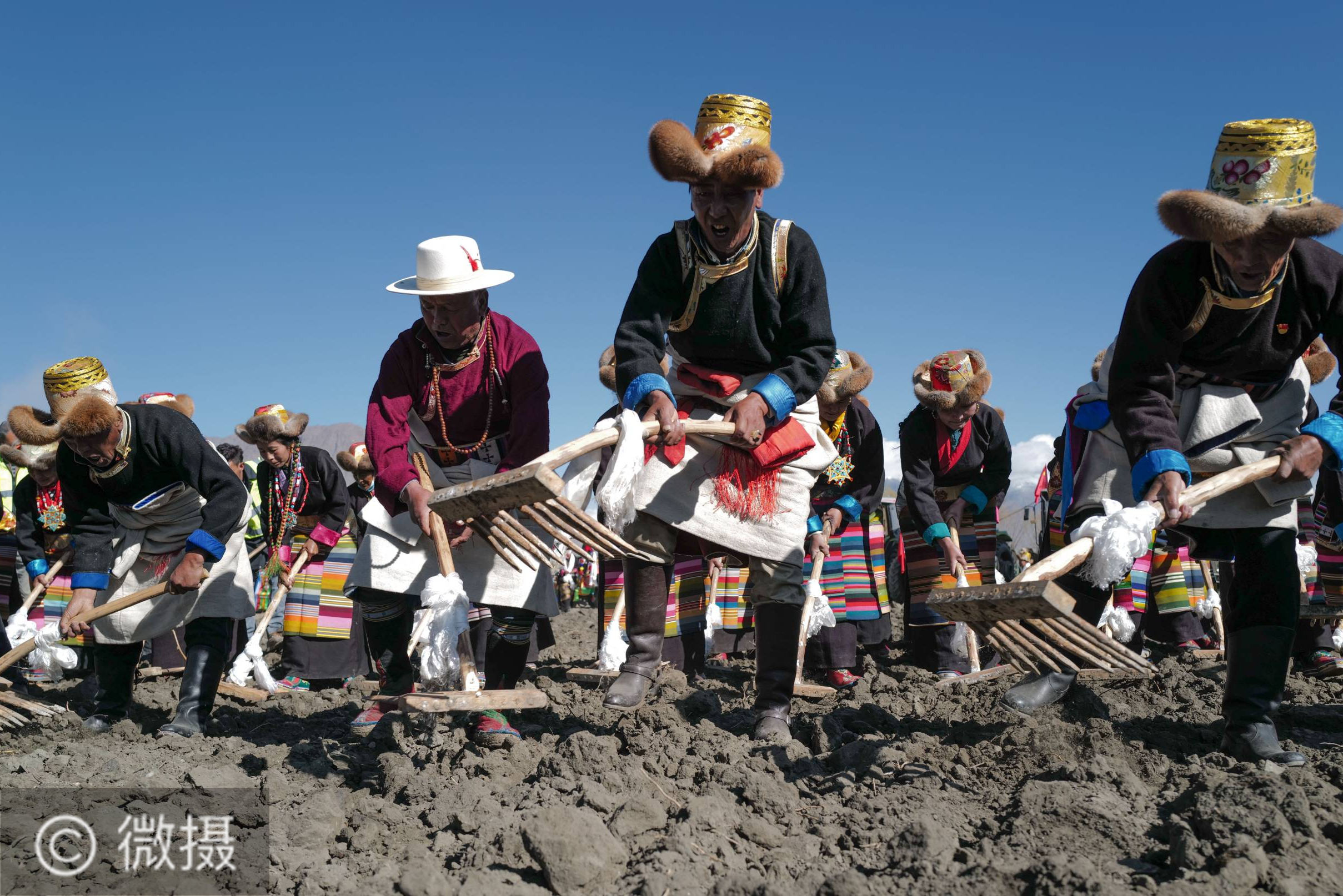 3月16日,克松社区居民在参加春耕仪式。当日,西藏多地举行春耕仪式。西藏山南市乃东区昌珠镇克松社区居民把装扮一新的拖拉机开到农田里,人们身着节日盛装齐聚田野,在古老的《春耕之歌》的悠扬旋律中举行春耕仪式。新华社记者 孙瑞博 摄