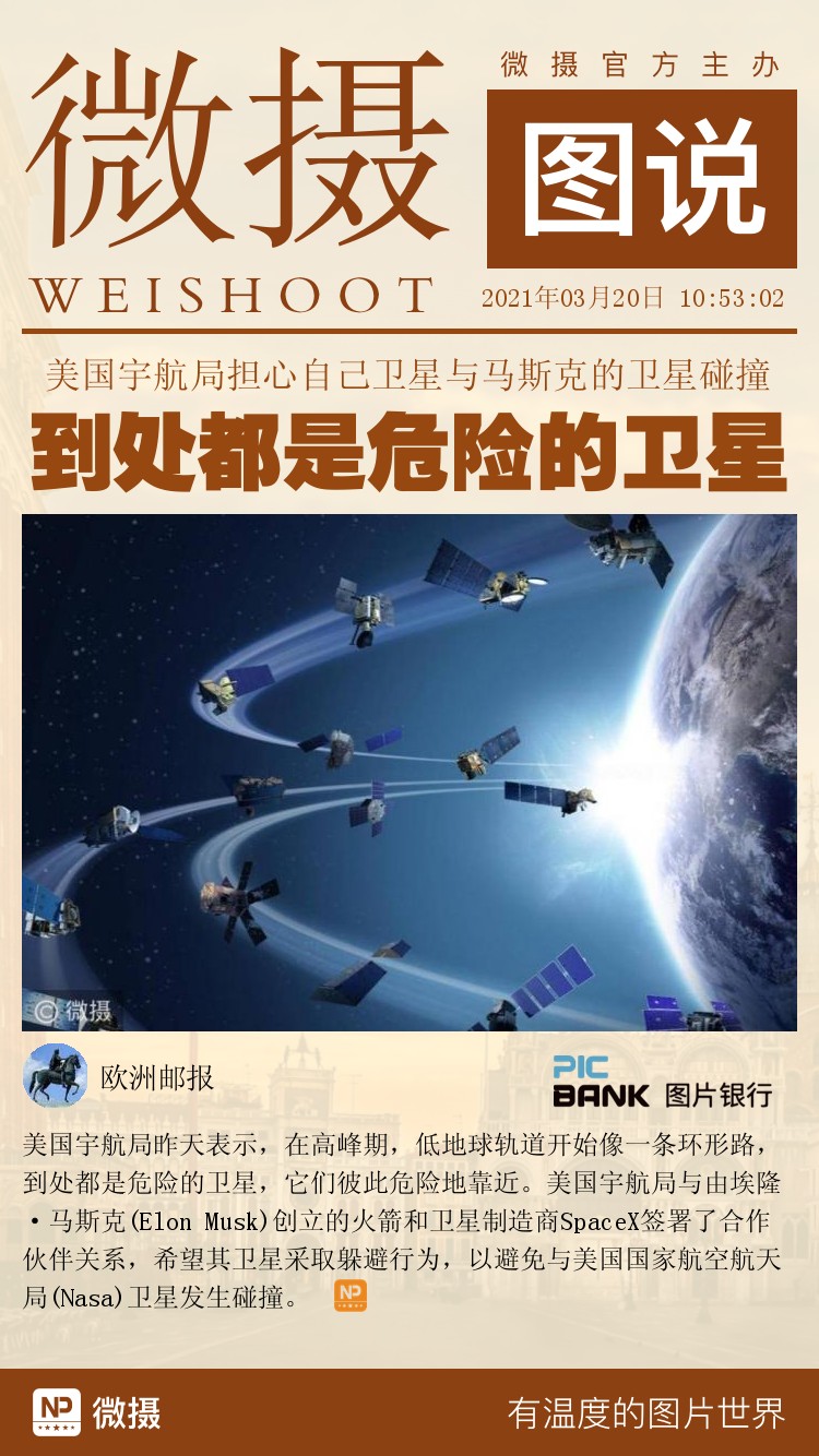 美国宇航局担心自己卫星与马斯克的卫星碰撞