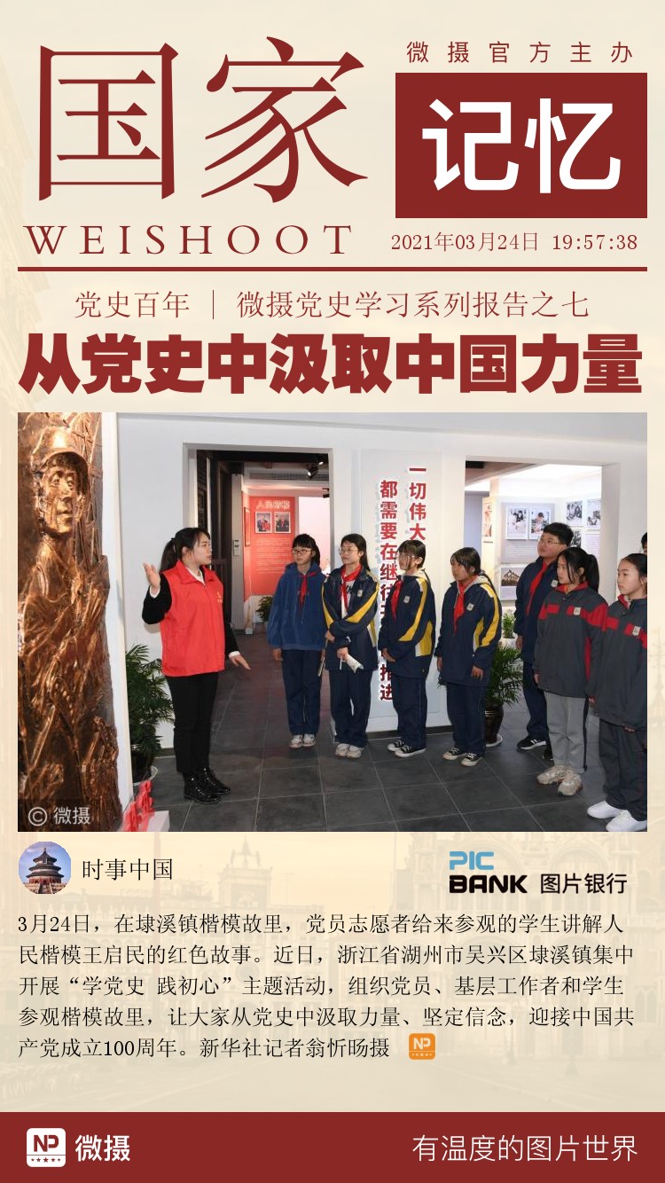 3月24日,在埭溪镇楷模故里,党员志愿者给来参观的学生讲解人民楷模王启民的红色故事。近日,浙江省湖州市吴兴区埭溪镇集中开展“学党史 践初心”主题活动,组织党员、基层工作者和学生参观楷模故里,让大家从党史中汲取力量、坚定信念,迎接中国共产党成立100周年。新华社记者翁忻旸摄