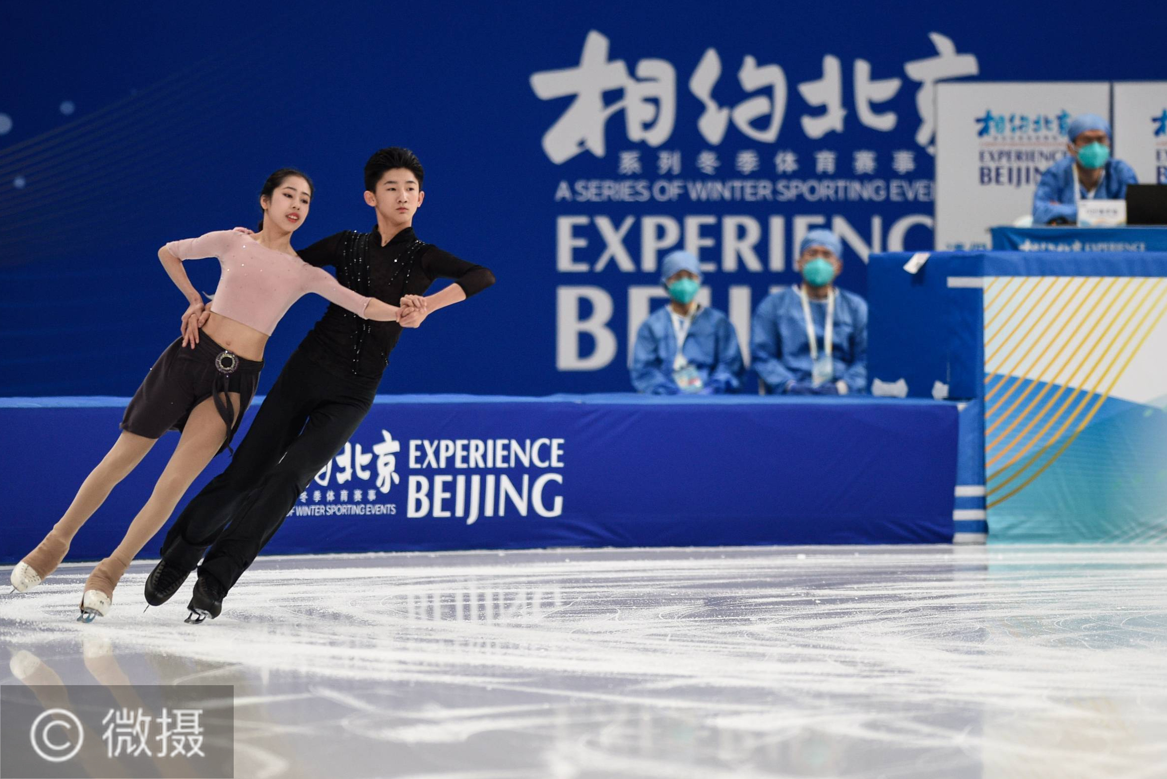 2021年4月4日,距北京2022年冬奥会还有306天。 4月3日,运动员在花样滑冰项目测试活动中。当日,相约北京”冰上项目测试活动花样滑冰比赛在首都体育馆举行。未来几日,短道速滑和花样滑冰将会在这里进行测试比赛。这也是首都体育馆完成冬奥场馆改造后的亮相。新华社记者彭子洋摄