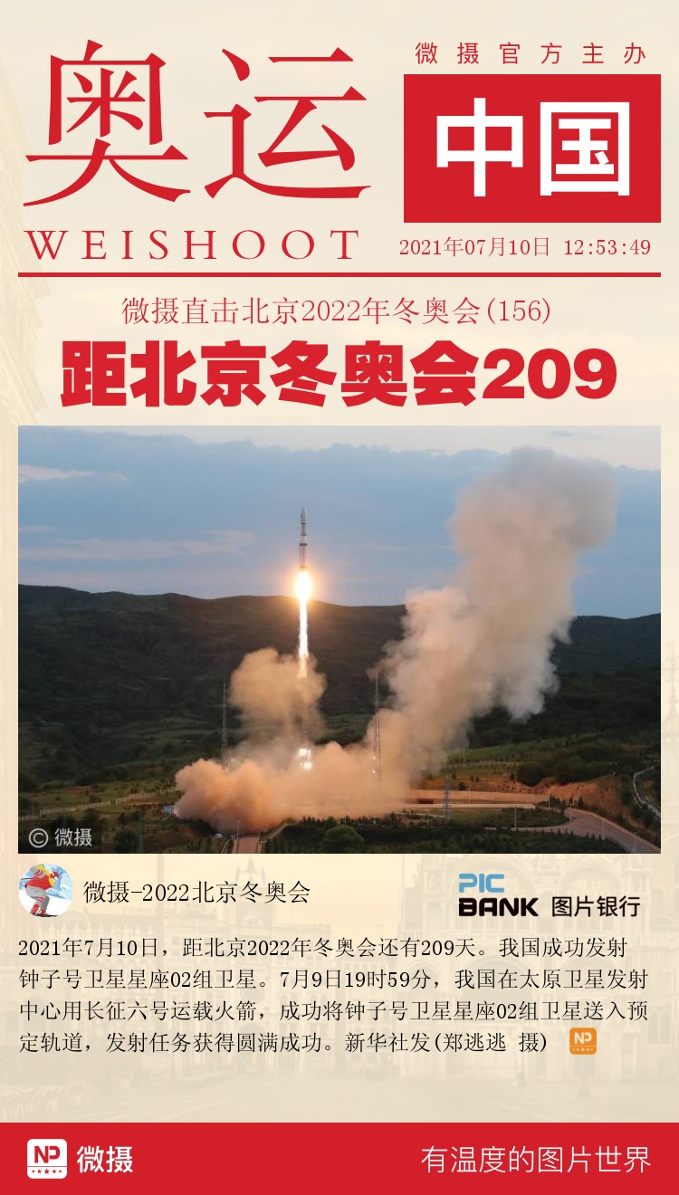 2021年7月10日,距北京2022年冬奥会还有209天。我国成功发射钟子号卫星星座02组卫星。7月9日19时59分,我国在太原卫星发射中心用长征六号运载火箭,成功将钟子号卫星星座02组卫星送入预定轨道,发射任务获得圆满成功。新华社发(郑逃逃 摄)