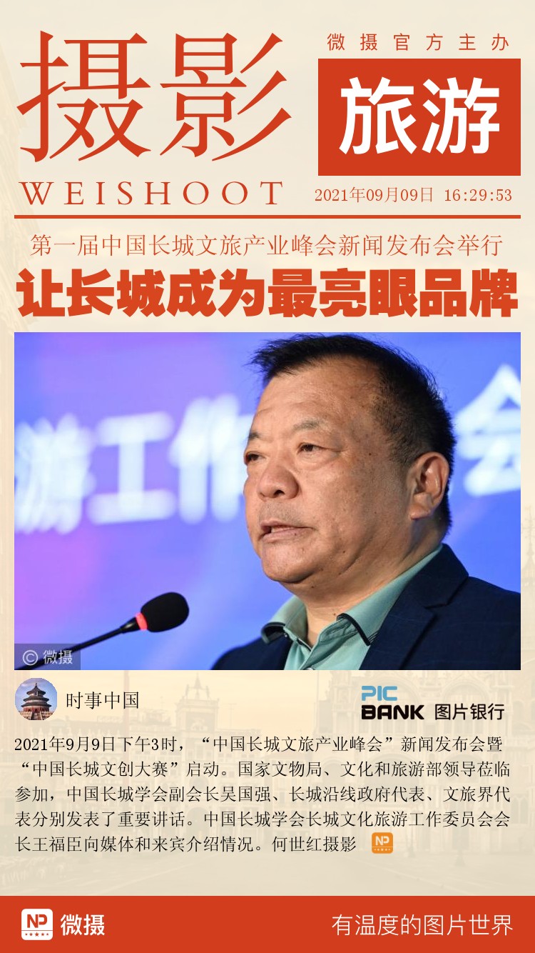 2021年9月9日下午3时,“中国长城文旅产业峰会”新闻发布会暨“中国长城文创大赛”启动。国家文物局、文化和旅游部领导莅临参加,中国长城学会副会长吴国强、长城沿线政府代表、文旅界代表分别发表了重要讲话。中国长城学会长城文化旅游工作委员会会长王福臣向媒体和来宾介绍情况。何世红摄影
