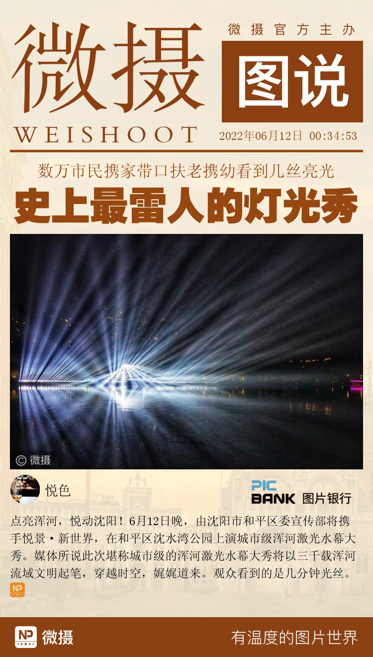 点亮浑河,悦动沈阳!6月12日晚,由沈阳市和平区委宣传部将携手悦景·新世界,在和平区沈水湾公园上演城市级浑河激光水幕大秀。媒体所说此次堪称城市级的浑河激光水幕大秀将以三千载浑河流域文明起笔,穿越时空,娓娓道来。观众看到的是几分钟光丝。