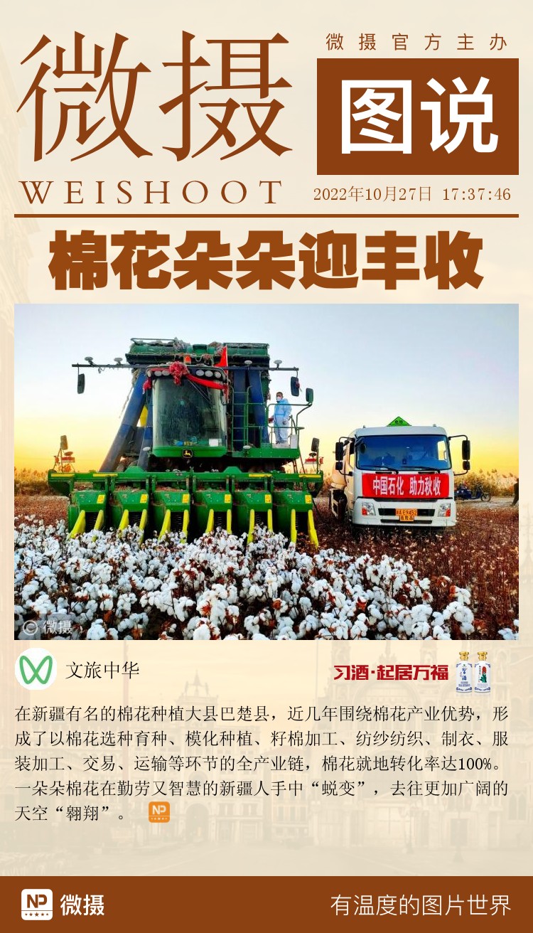 在新疆有名的棉花种植大县巴楚县,近几年围绕棉花产业优势,形成了以棉花选种育种、模化种植、籽棉加工、纺纱纺织、制衣、服装加工、交易、运输等环节的全产业链,棉花就地转化率达100%。一朵朵棉花在勤劳又智慧的新疆人手中“蜕变”,去往更加广阔的天空“翱翔”。