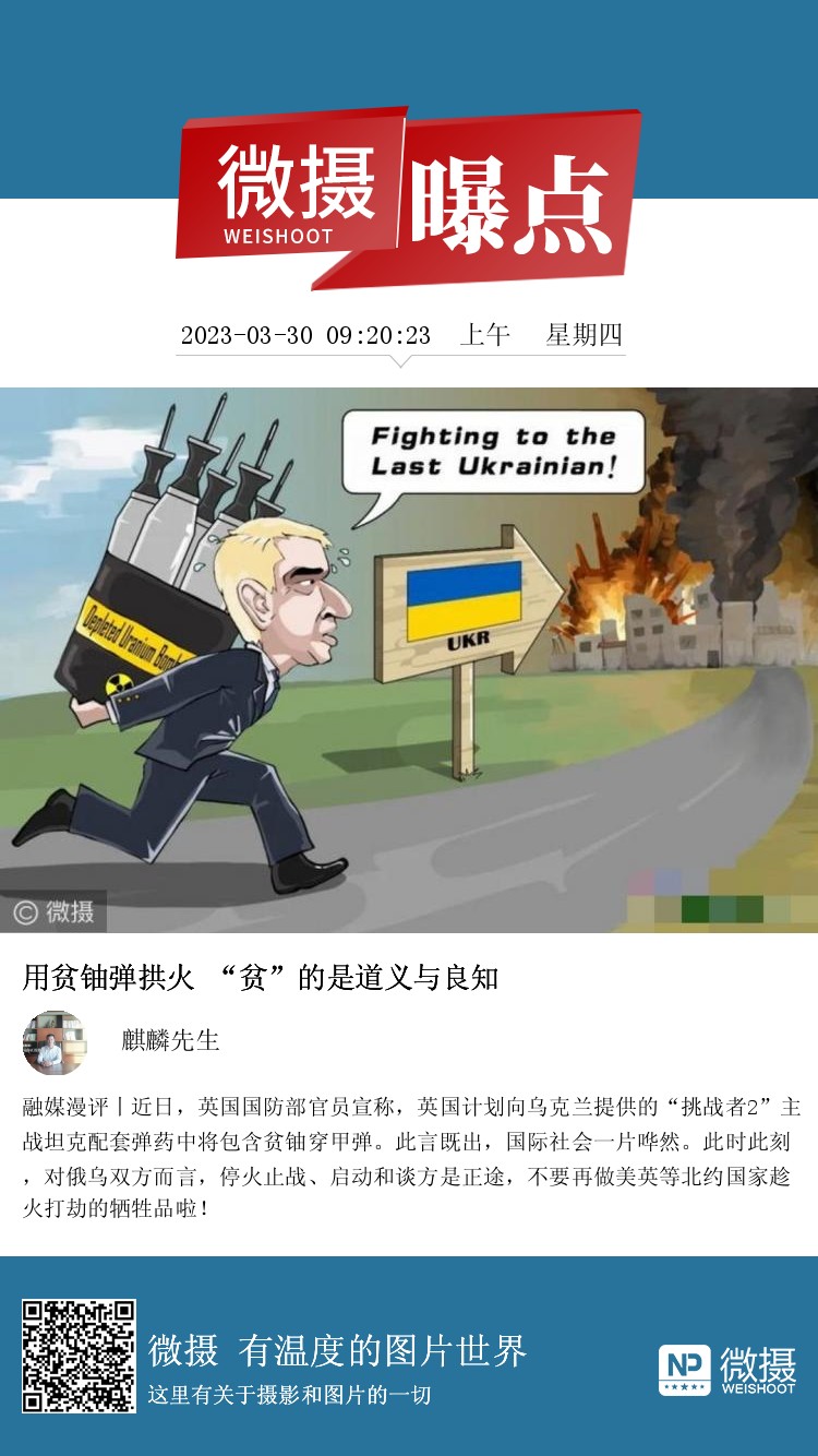 融媒漫评丨近日,英国国防部官员宣称,英国计划向乌克兰提供的“挑战者2”主战坦克配套弹药中将包含贫铀穿甲弹。此言既出,国际社会一片哗然。此时此刻,对俄乌双方而言,停火止战、启动和谈方是正途,不要再做美英等北约国家趁火打劫的牺牲品啦!