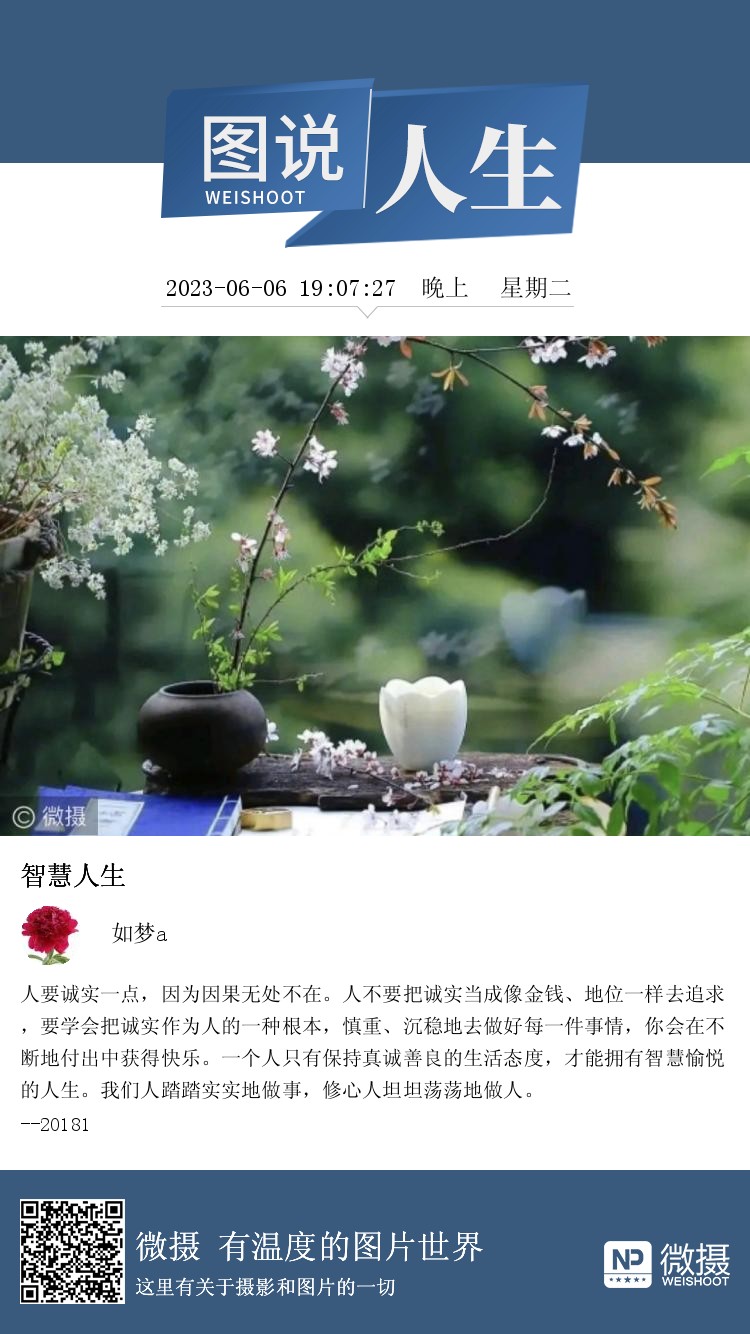 人要诚实一点,因为因果无处不在。人不要把诚实当成像金钱、地位一样去追求,要学会把诚实作为人的一种根本,慎重、沉稳地去做好每一件事情,你会在不断地付出中获得快乐。一个人只有保持真诚善良的生活态度,才能拥有智慧愉悦的人生。我们人踏踏实实地做事,修心人坦坦荡荡地做人。 --20181