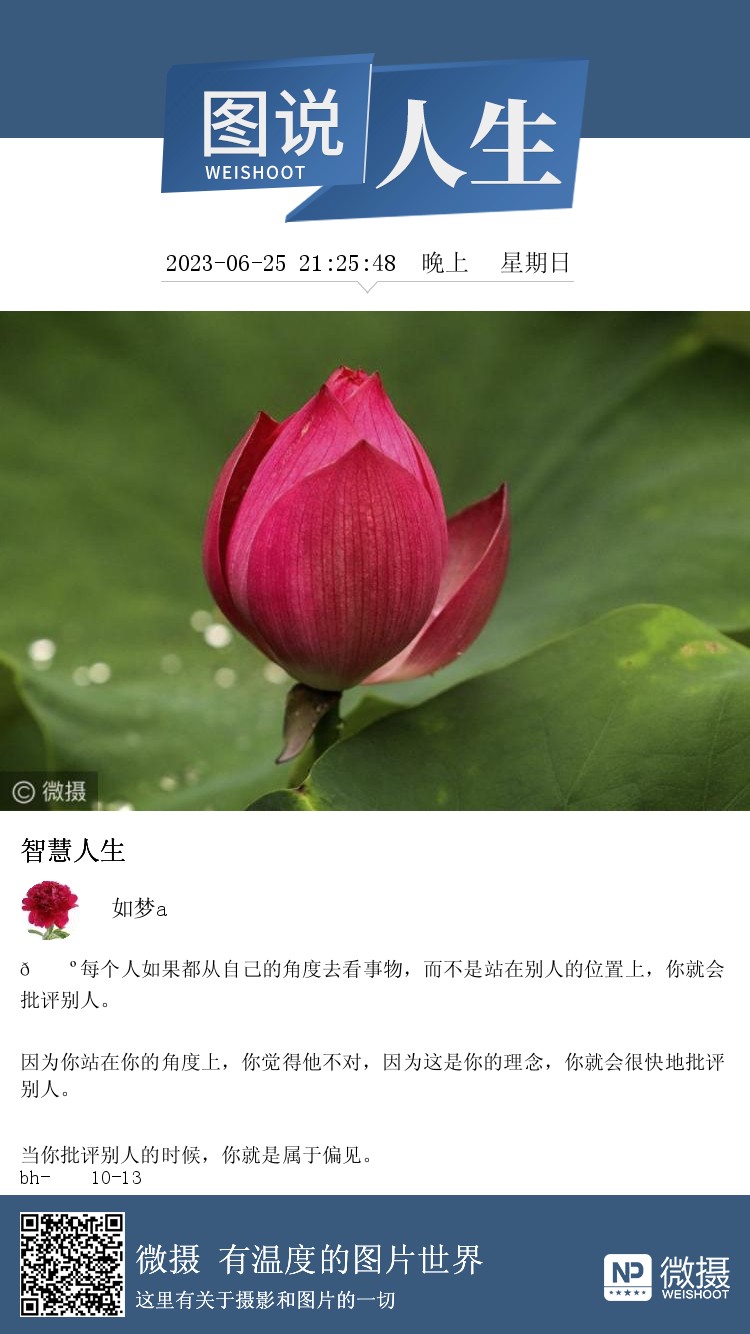 🌺每个人如果都从自己的角度去看事物,而不是站在别人的位置上,你就会批评别人。 因为你站在你的角度上,你觉得他不对,因为这是你的理念,你就会很快地批评别人。 当你批评别人的时候,你就是属于偏见。 bh-☘️10-13