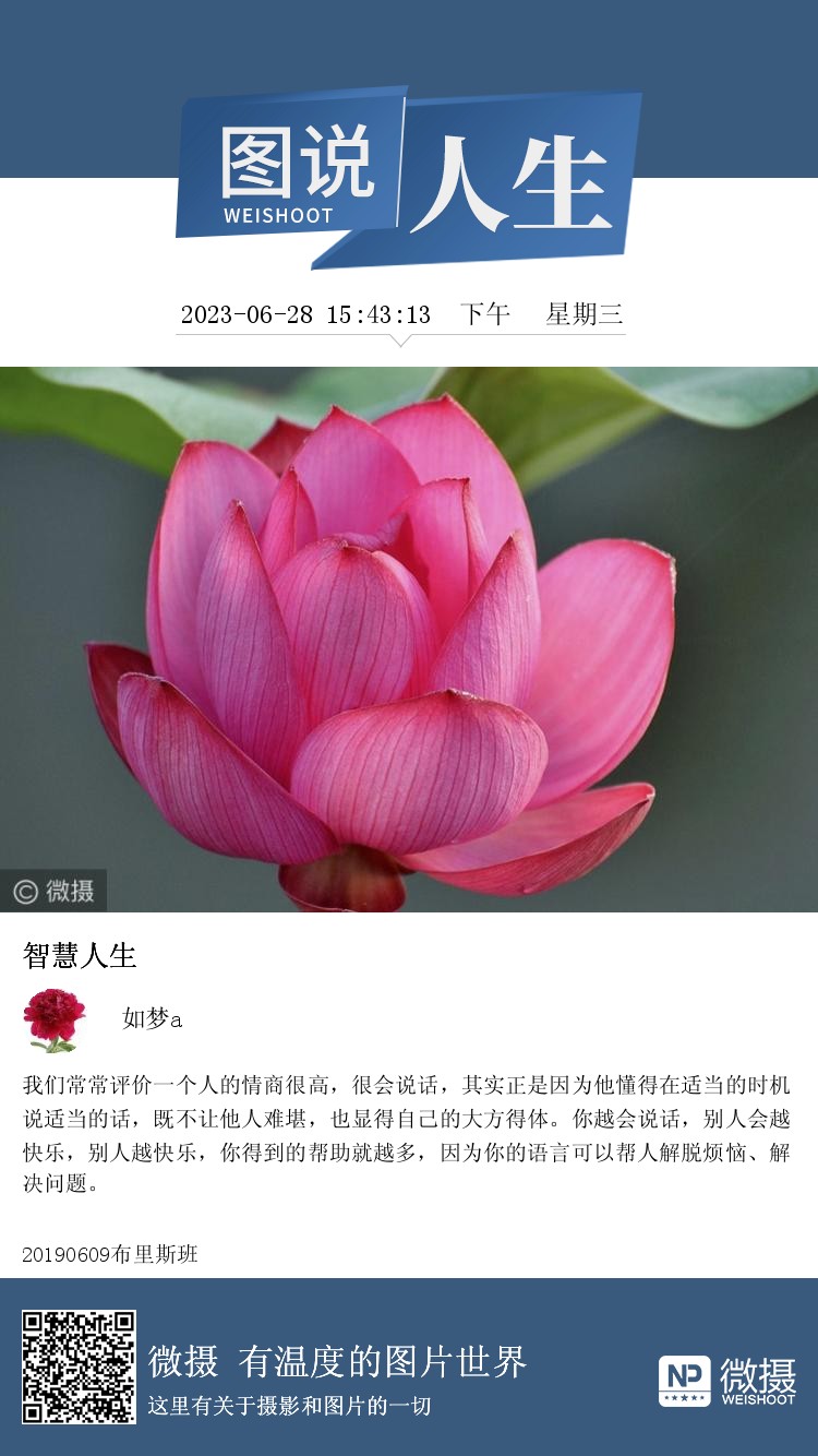 我们常常评价一个人的情商很高,很会说话,其实正是因为他懂得在适当的时机说适当的话,既不让他人难堪,也显得自己的大方得体。你越会说话,别人会越快乐,别人越快乐,你得到的帮助就越多,因为你的语言可以帮人解脱烦恼、解决问题。 20190609布里斯班