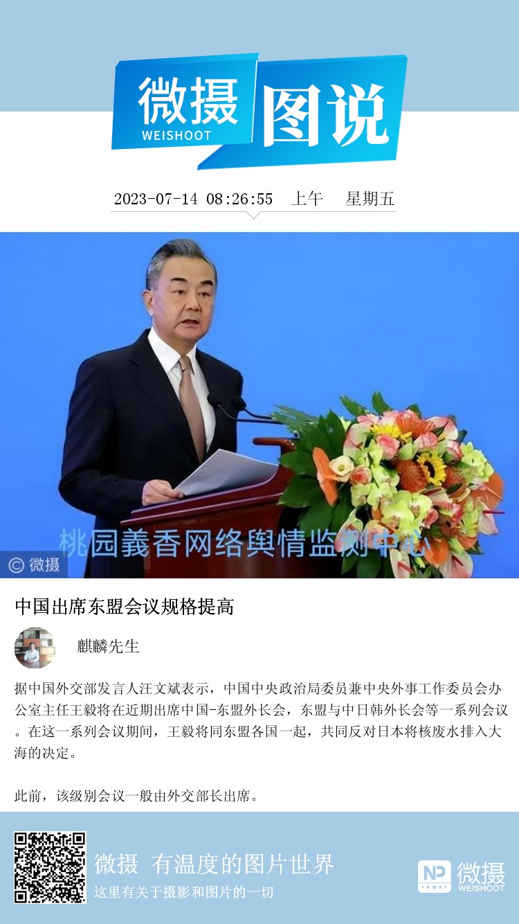 据中国外交部发言人汪文斌表示,中国中央政治局委员兼中央外事工作委员会办公室主任王毅将在近期出席中国-东盟外长会,东盟与中日韩外长会等一系列会议。在这一系列会议期间,王毅将同东盟各国一起,共同反对日本将核废水排入大海的决定。 此前,该级别会议一般由外交部长出席。