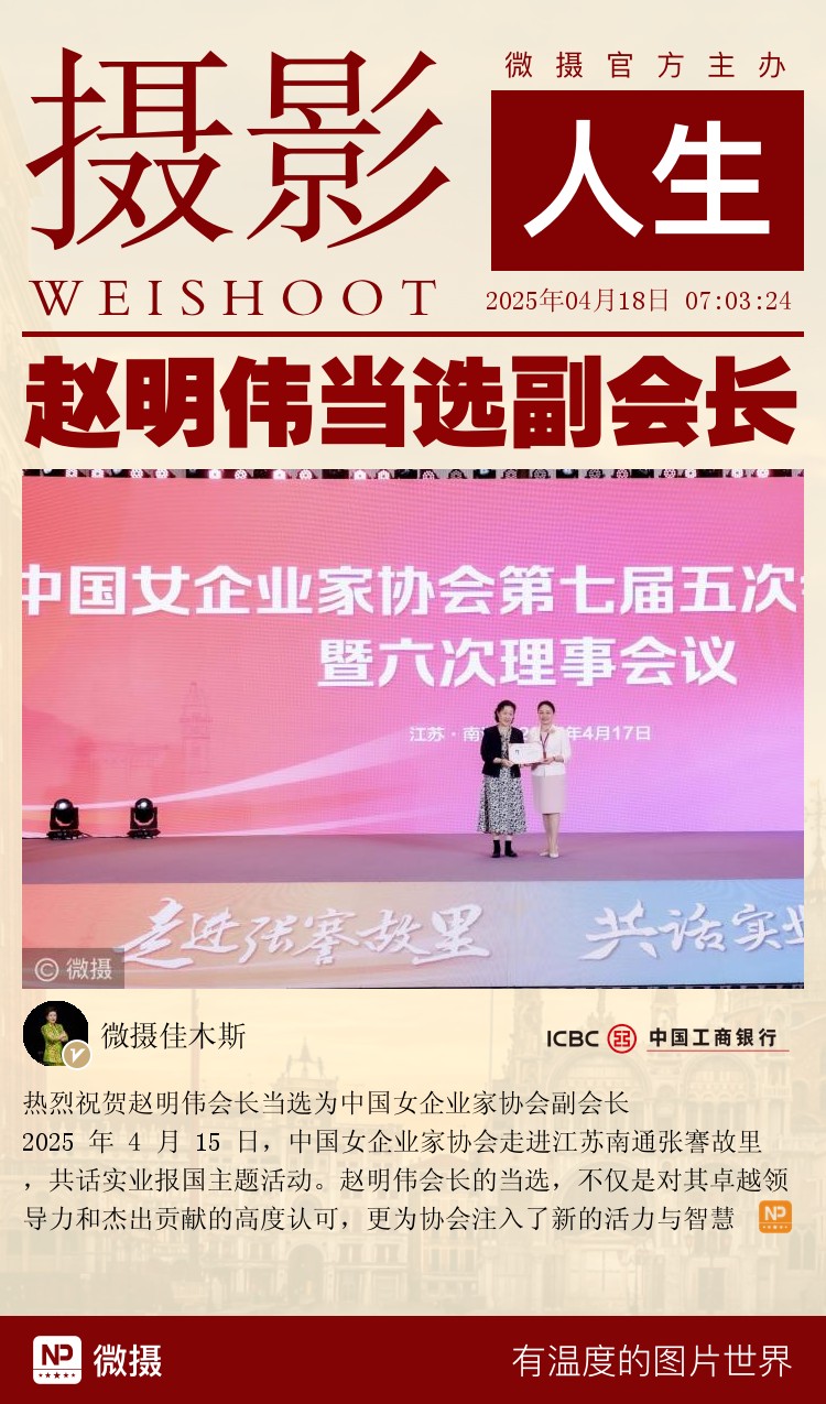 热烈祝贺赵明伟会长当选为中国女企业家协会副会长 2025 年 4 月 15 日,中国女企业家协会走进江苏南通张謇故里,共话实业报国主题活动。赵明伟会长的当选,不仅是对其卓越领导力和杰出贡献的高度认可,更为协会注入了新的活力与智慧