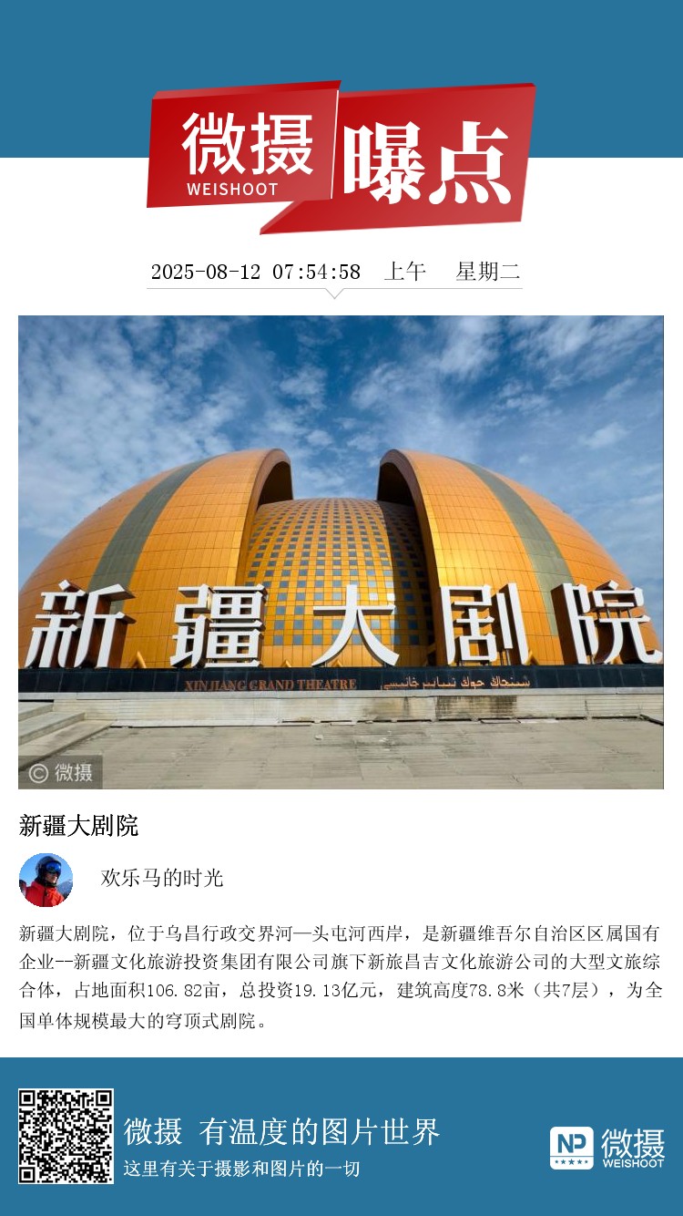 新疆大剧院,位于乌昌行政交界河—头屯河西岸,是新疆维吾尔自治区区属国有企业--新疆文化旅游投资集团有限公司旗下新旅昌吉文化旅游公司的大型文旅综合体,占地面积106.82亩,总投资19.13亿元,建筑高度78.8米(共7层),为全国单体规模最大的穹顶式剧院。