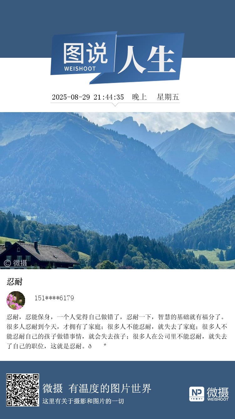 忍耐,忍能保身,一个人觉得自己做错了,忍耐一下,智慧的基础就有福分了。很多人忍耐到今天,才拥有了家庭;很多人不能忍耐,就失去了家庭;很多人不能忍耐自己的孩子做错事情,就会失去孩子;很多人在公司里不能忍耐,就失去了自己的职位,这就是忍耐。🌺